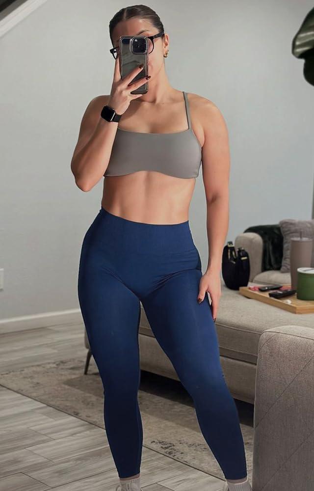 imageAoxjox Womens Impact Seamless Workout Leggings Hidden Scrunch Butt Lifting Low Waist Yoga Pants 26quotDark Navy New Fabric  Ture to Size
