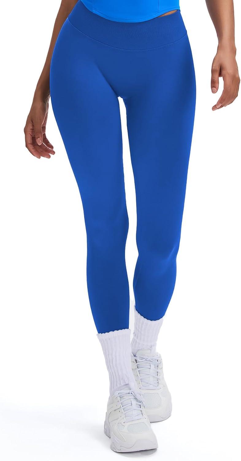 Aoxjox Women's Impact Seamless Workout Leggings Hidden Scrunch Butt Lifting Low Waist Yoga Pants 26"(Galaxy Blue (New Fabric Ture to Size))