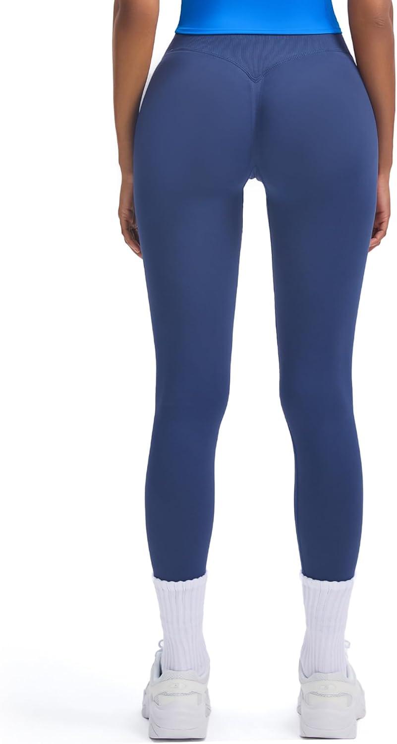 Aoxjox Women’s Impact Seamless Workout Leggings Hidden Scrunch Butt Lifting Low Waist Yoga Pants 26″(Navy (Run Small Size Up))