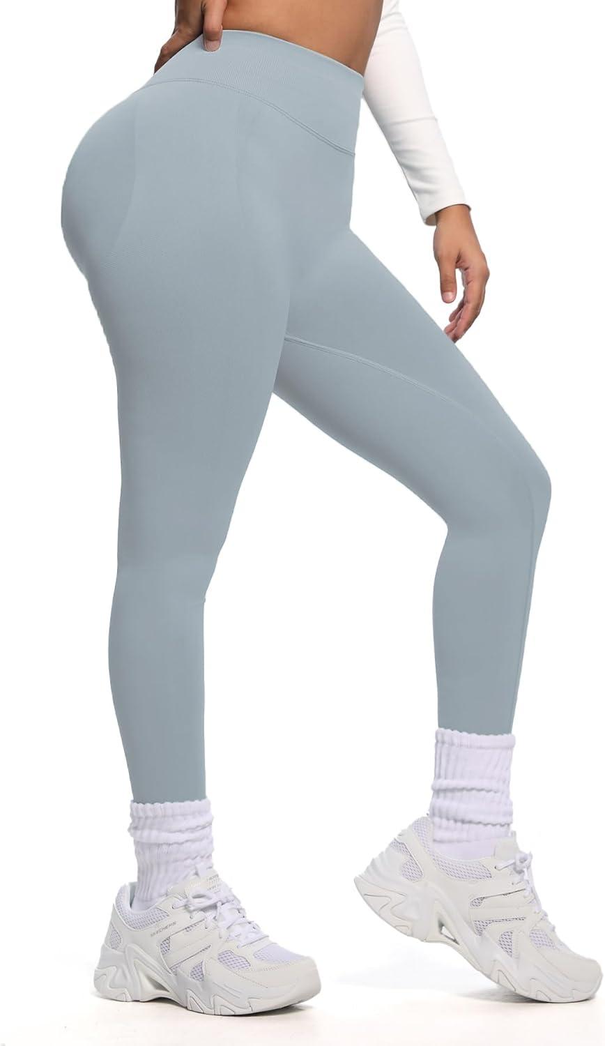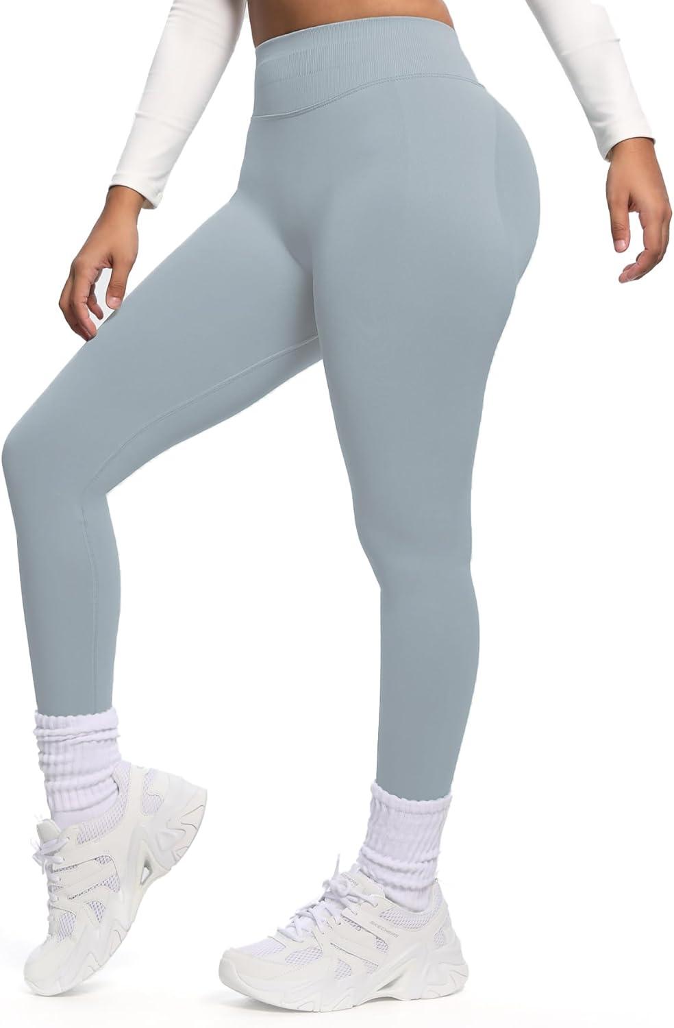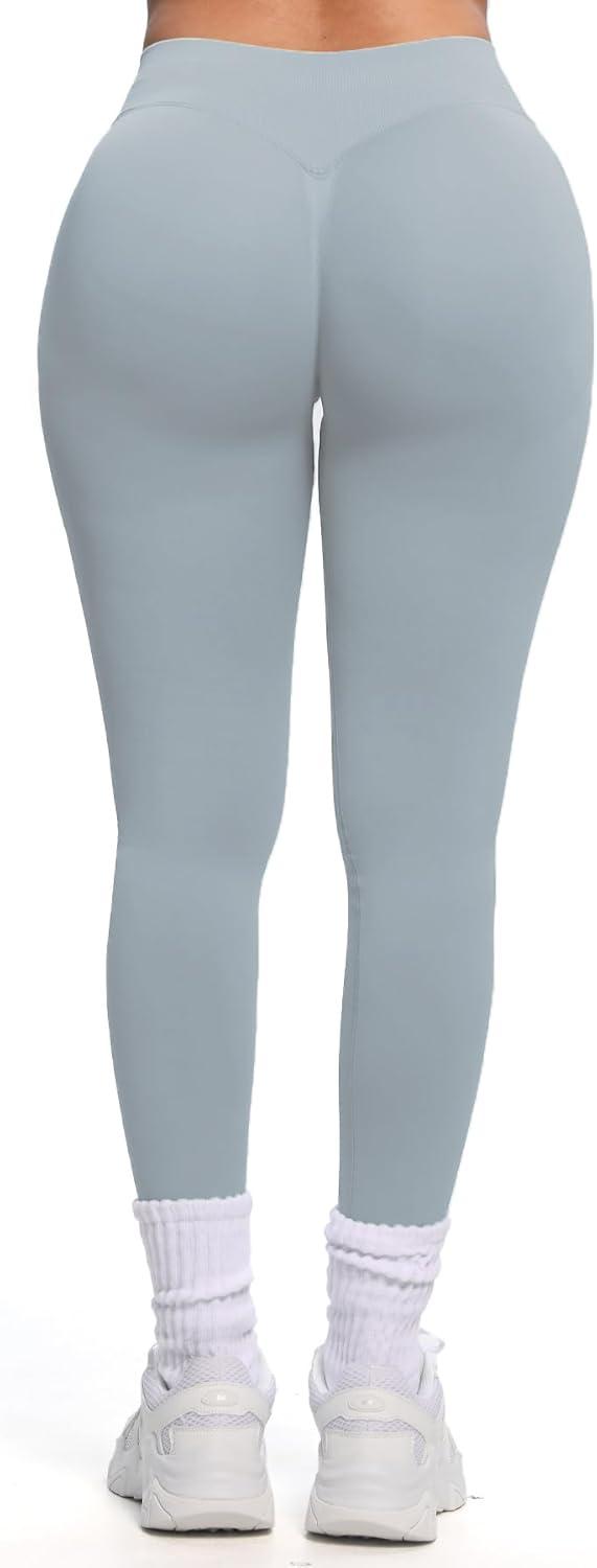 Aoxjox Women's Impact Seamless Workout Leggings Hidden Scrunch Butt Lifting Low Waist Yoga Pants 26"(Quiet Grey (New Fabric Ture to Size))