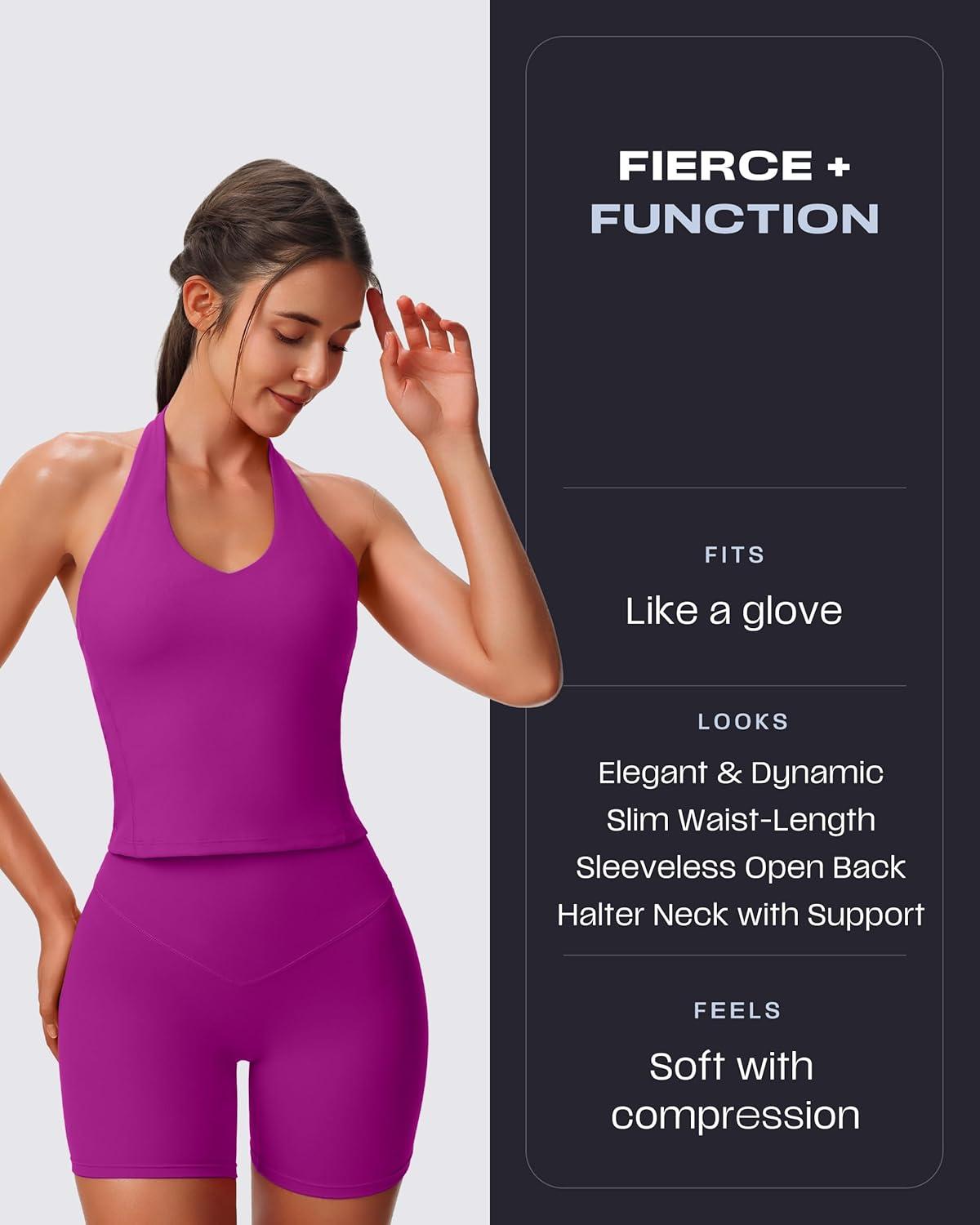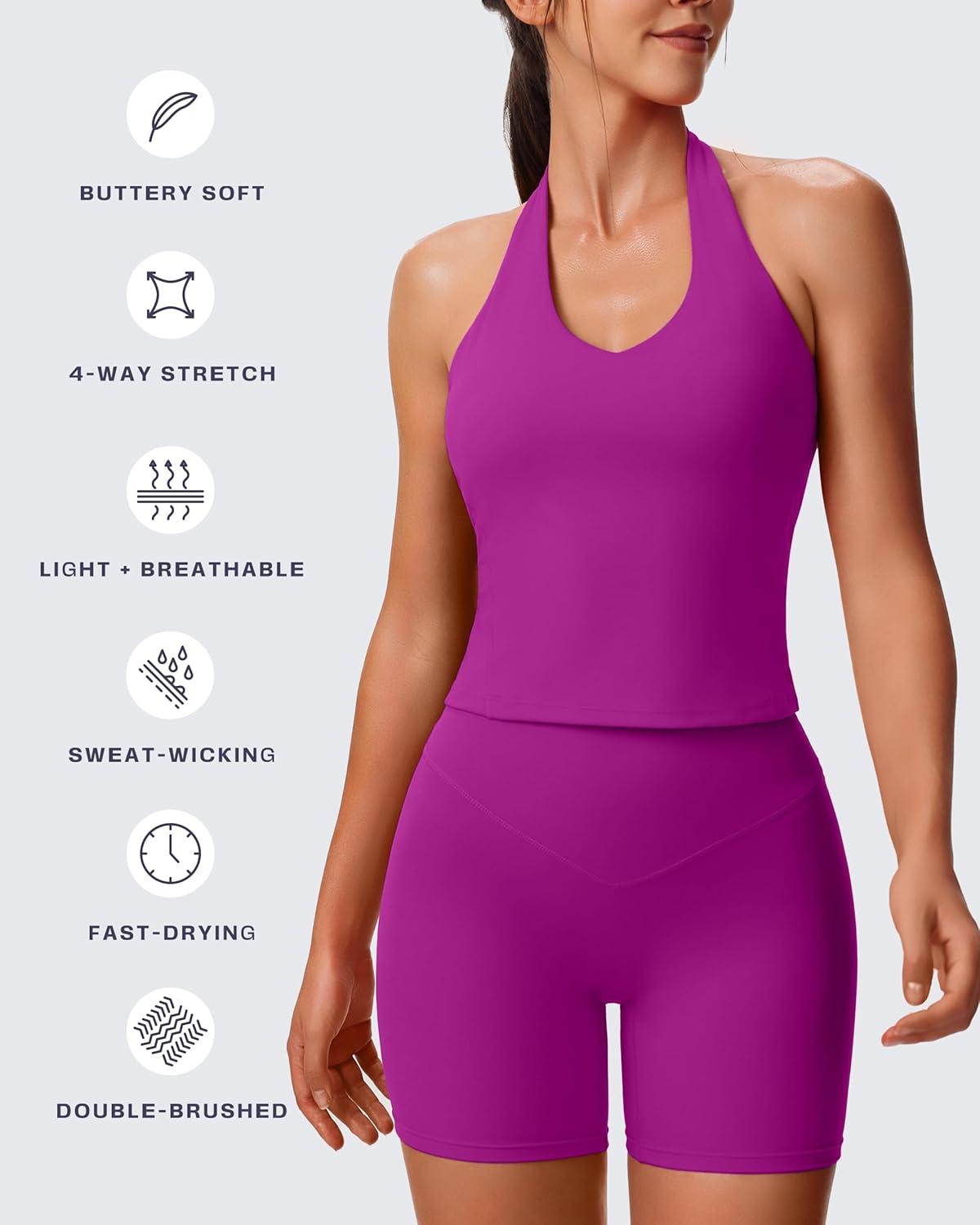Aoxjox Women's Sleeveless Hailey Halter Tank Tops Workout Athletics Gym Yoga Curve Longline Crop Top(Purple)