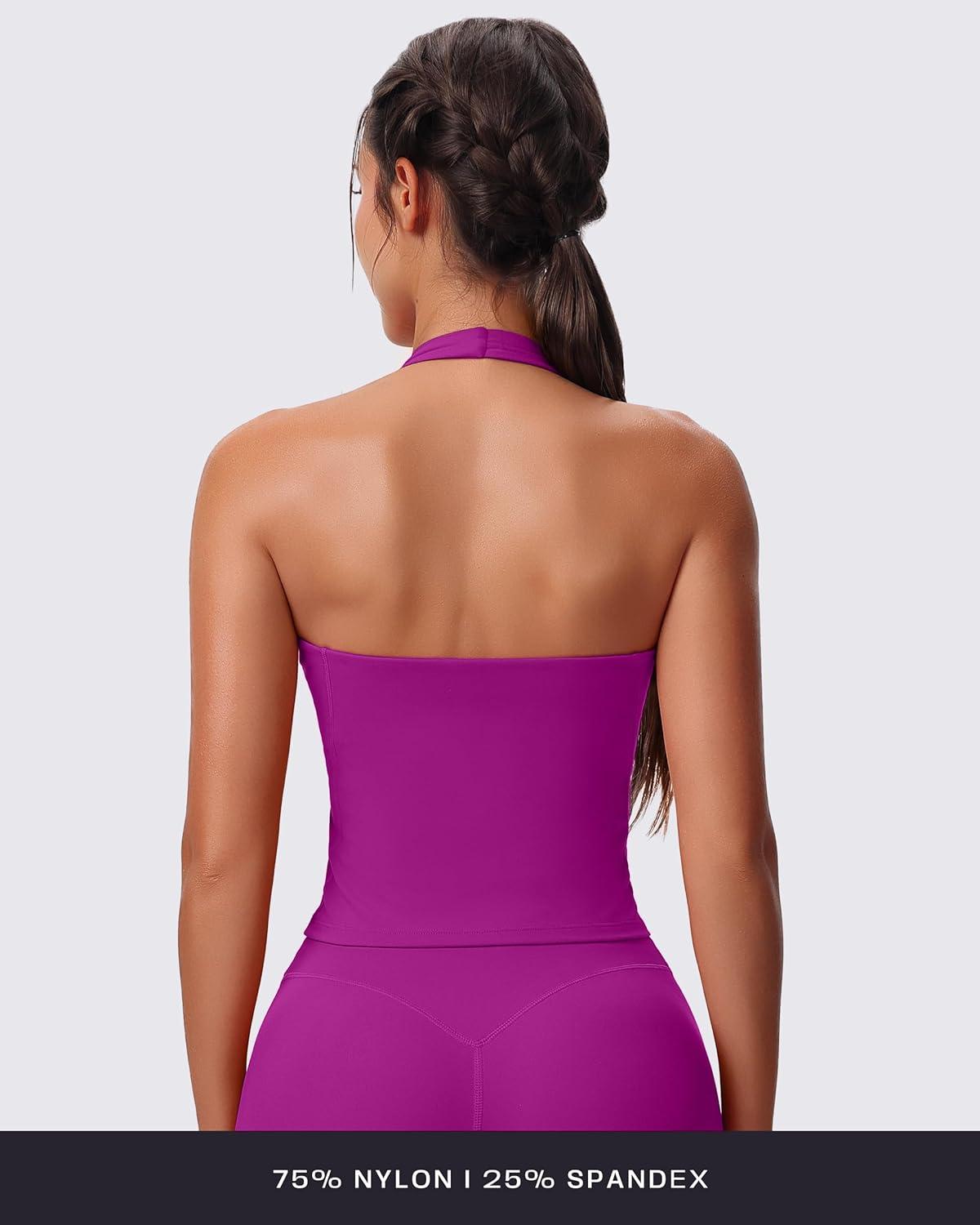 Aoxjox Women’s Sleeveless Hailey Halter Tank Tops Workout Athletics Gym Yoga Curve Longline Crop Top(Purple)