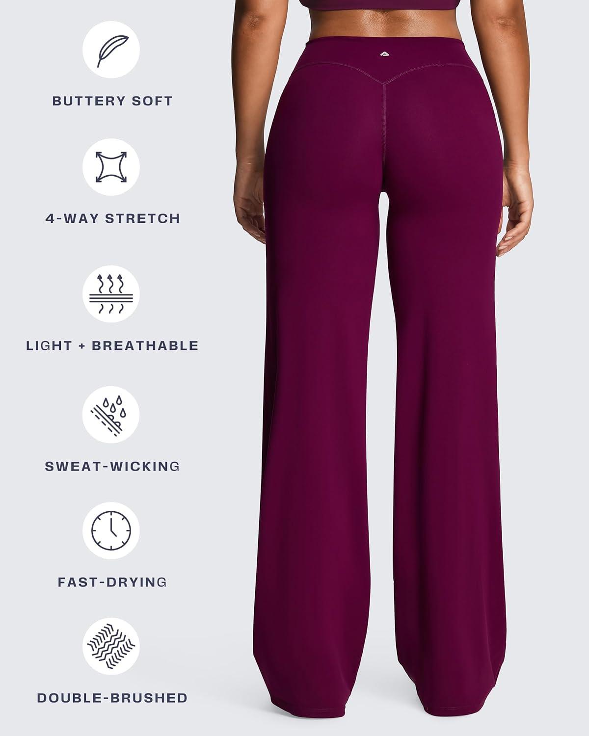 Aoxjox Women’s Workout Athlenza Straight Leg Bottoms High Waist Lumastretch™ Gym Yoga Pants 31″/ 33″/ 35″(Burgundy)