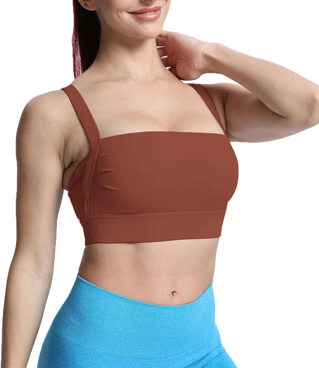 Aoxjox Women’s Workout High Impact Sports Bras Fitness Square Neck Balcony Open Back Bra Yoga Crop Tank Top(Brownie)