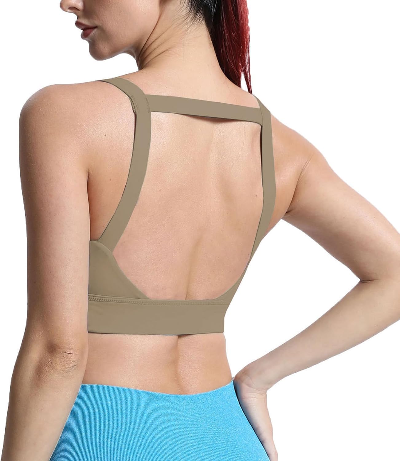 Aoxjox Women’s Workout High Impact Sports Bras Fitness Square Neck Balcony Open Back Bra Yoga Crop Tank Top(Taupe)
