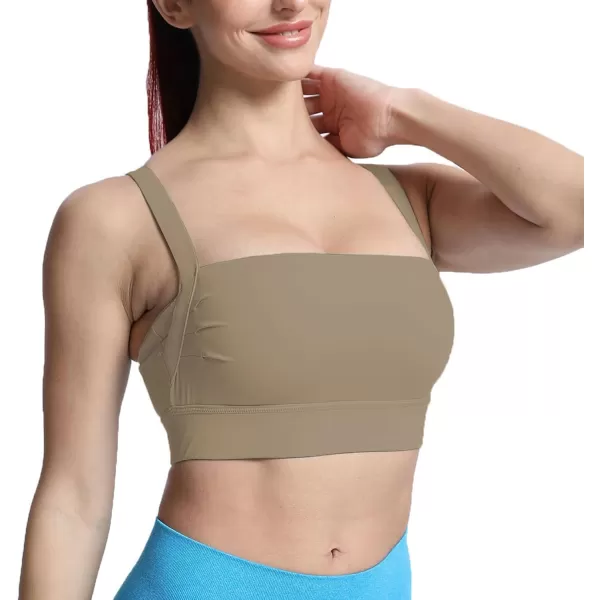 imageAoxjox Womens Workout High Impact Sports Bras Fitness Square Neck Balcony Open Back Bra Yoga Crop Tank TopTaupe