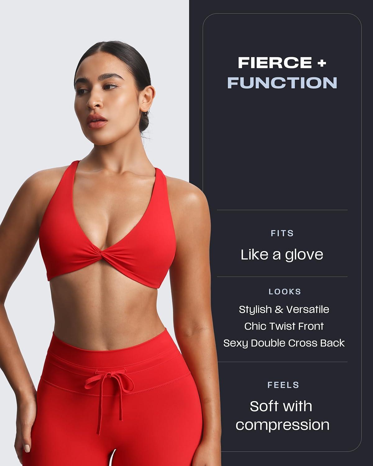 Aoxjox Women's Workout Sienna Crossback Sports Bras Fitness Low Impact Bra Yoga Crop Tank(Racing Red)