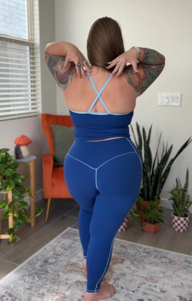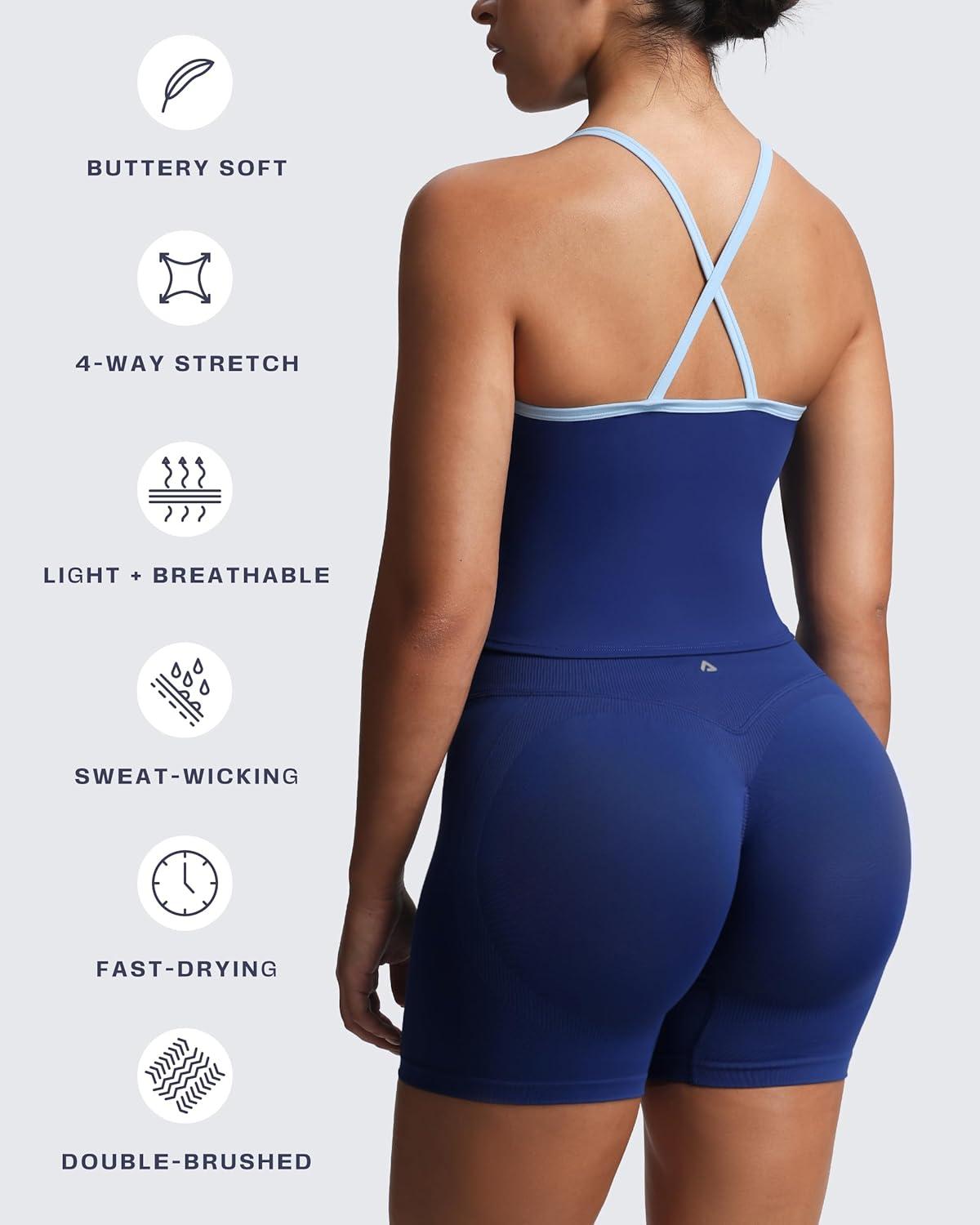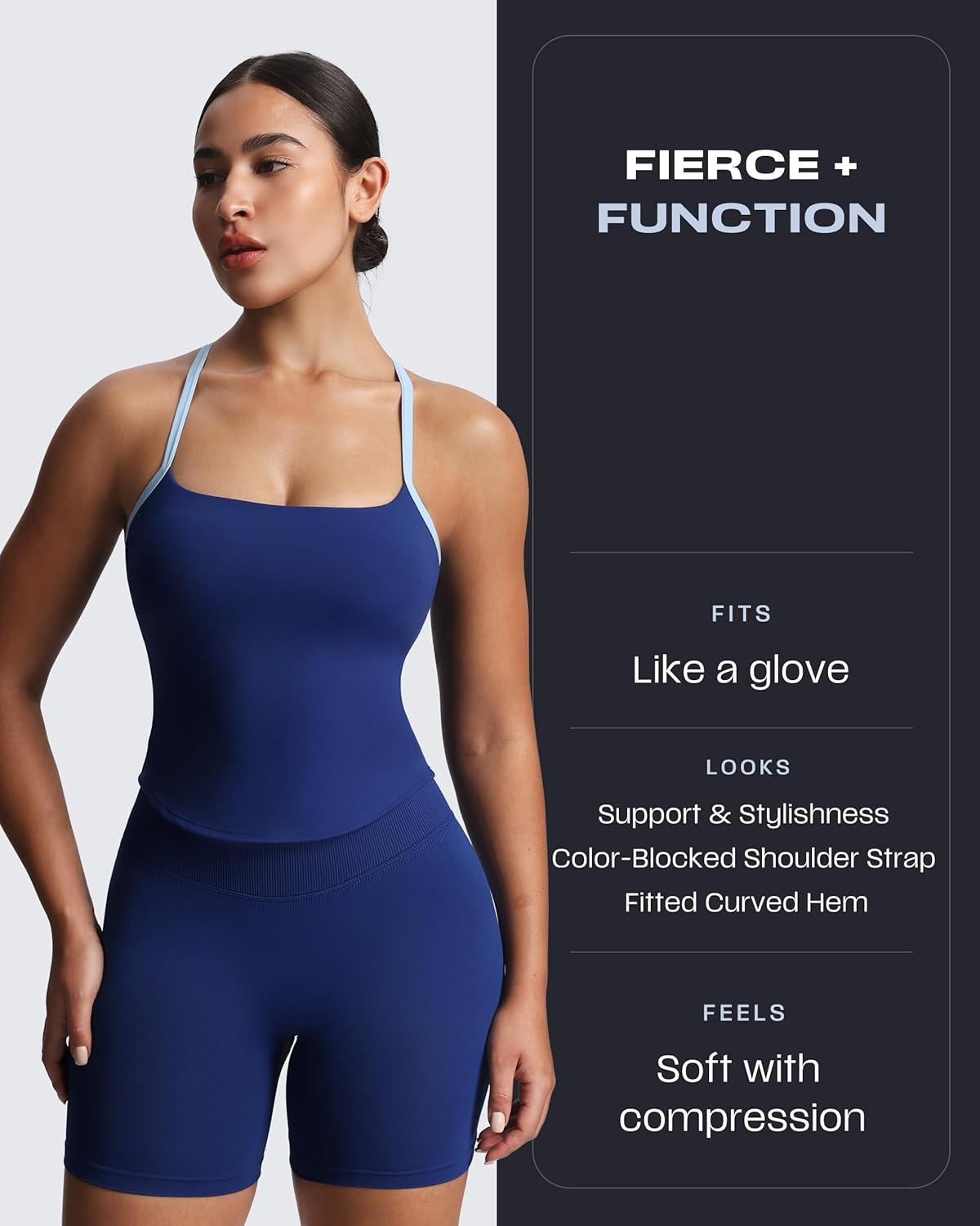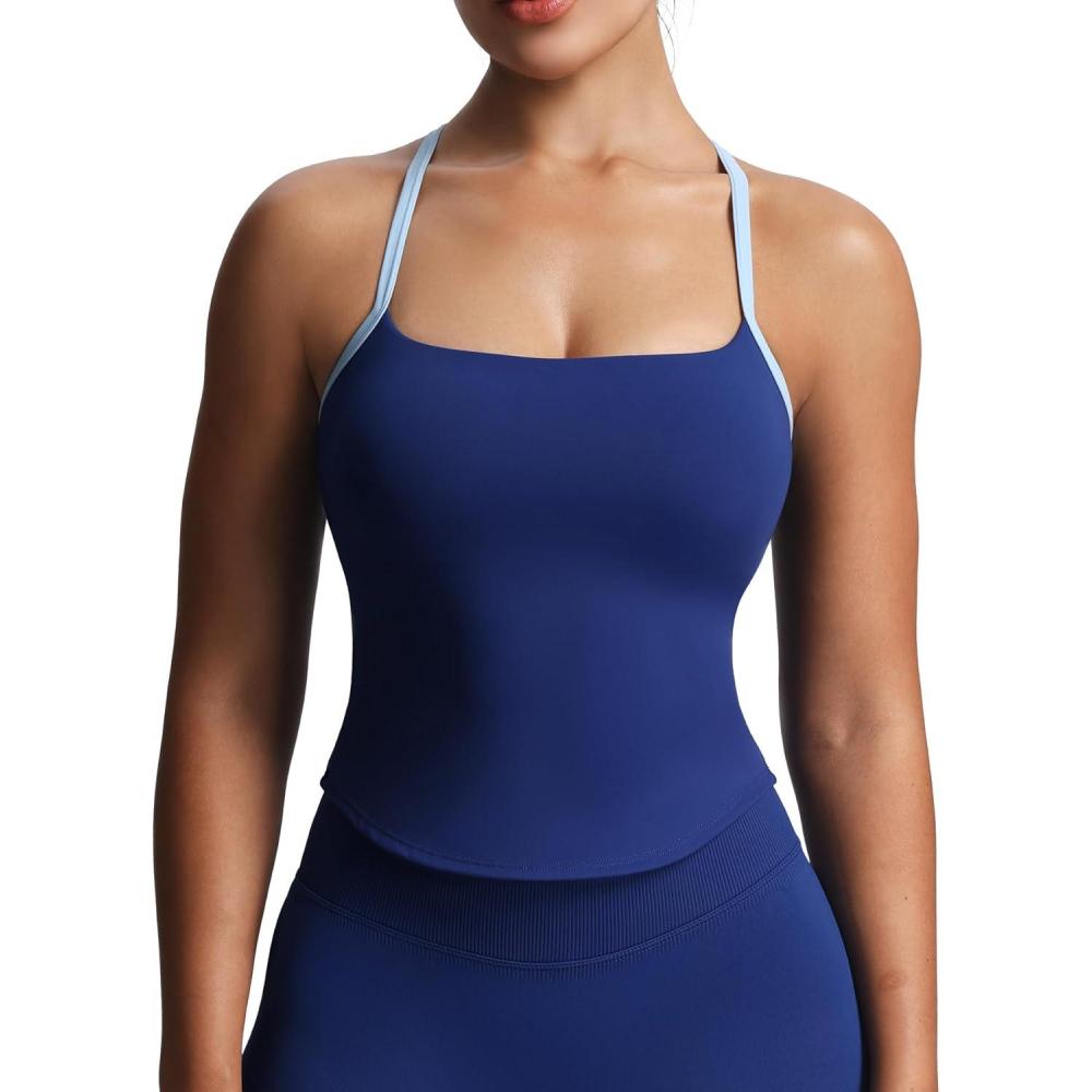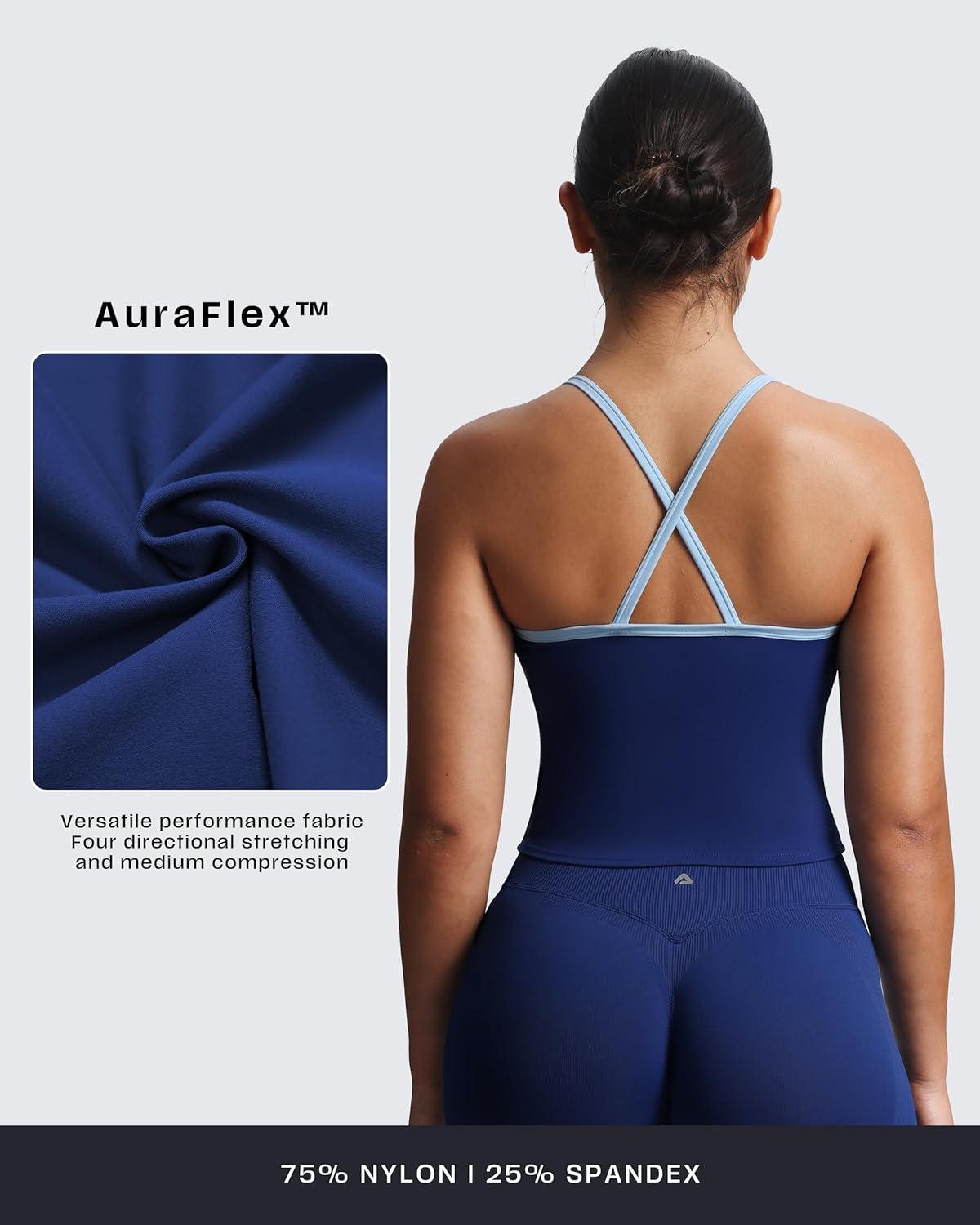 imageAoxjox Womens Workout Sleeveless Color Block Lexi Tank Tops Contrasting Strap Cross Back Yoga Curve Longline Crop TopBellwether BlueAiry Blue