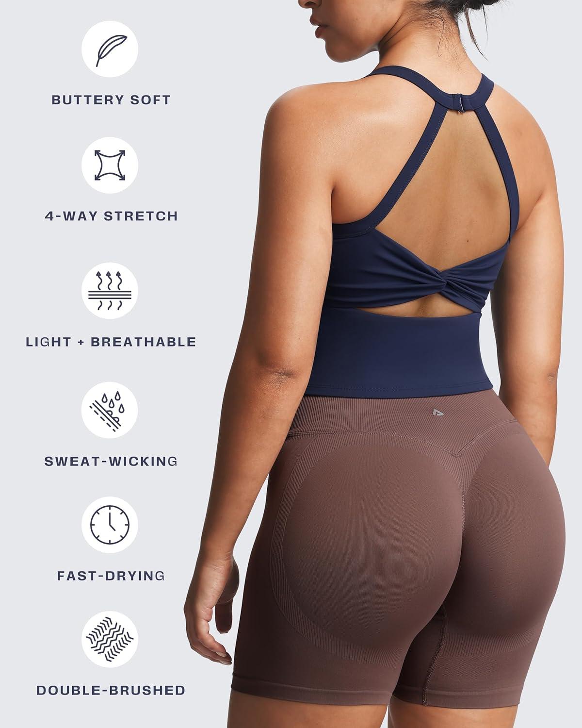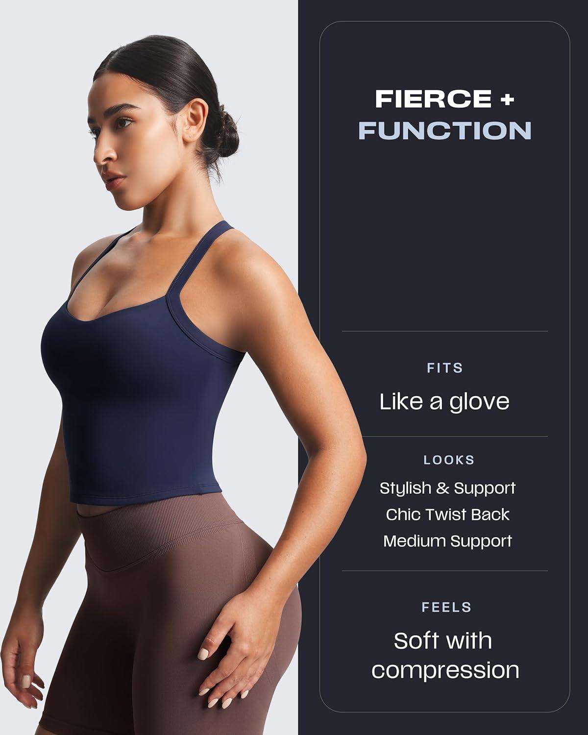 Aoxjox Women's Workout Sleeveless Lola Longline Tank Fitness Training Gym Yoga Crop Tanks(Navy)