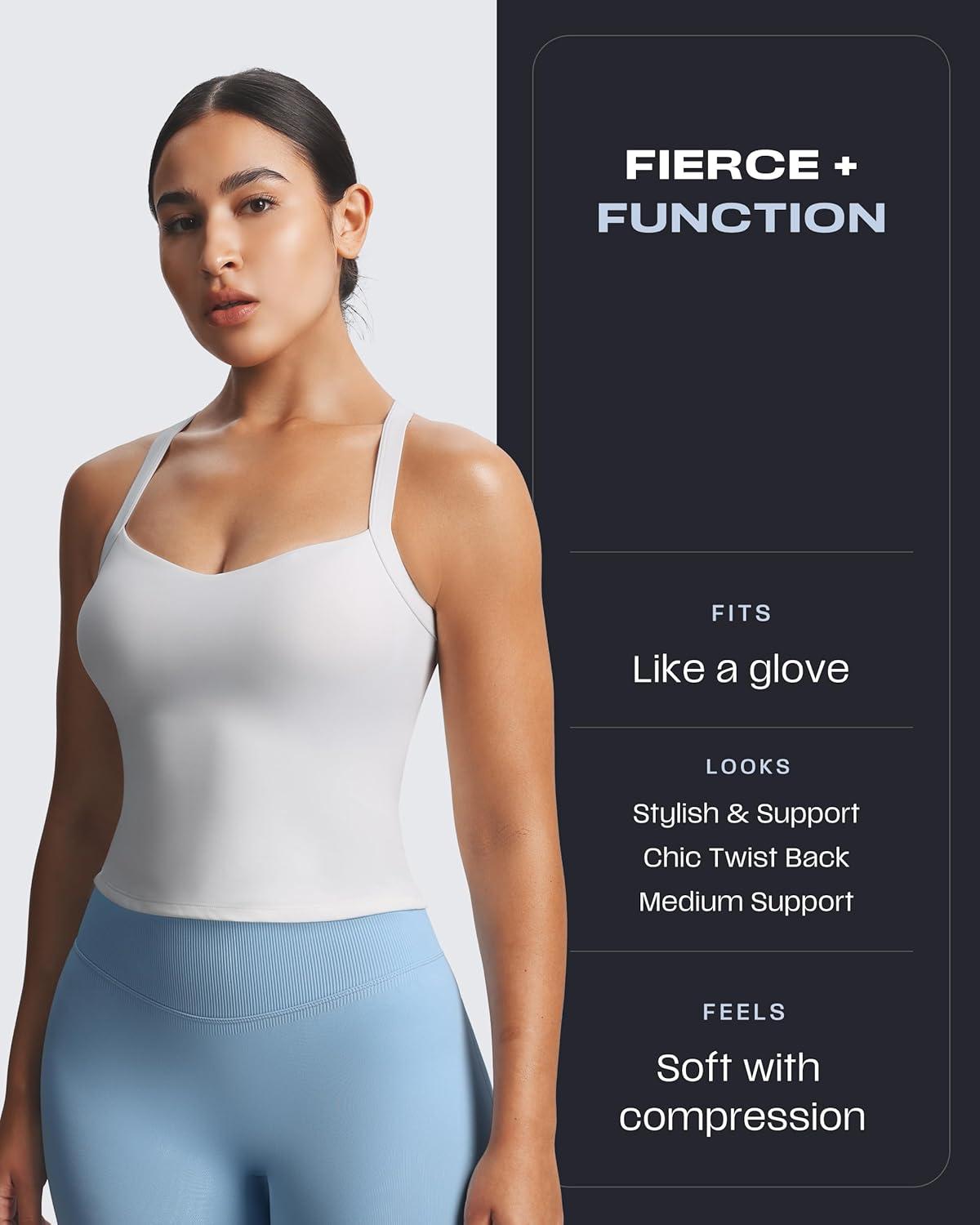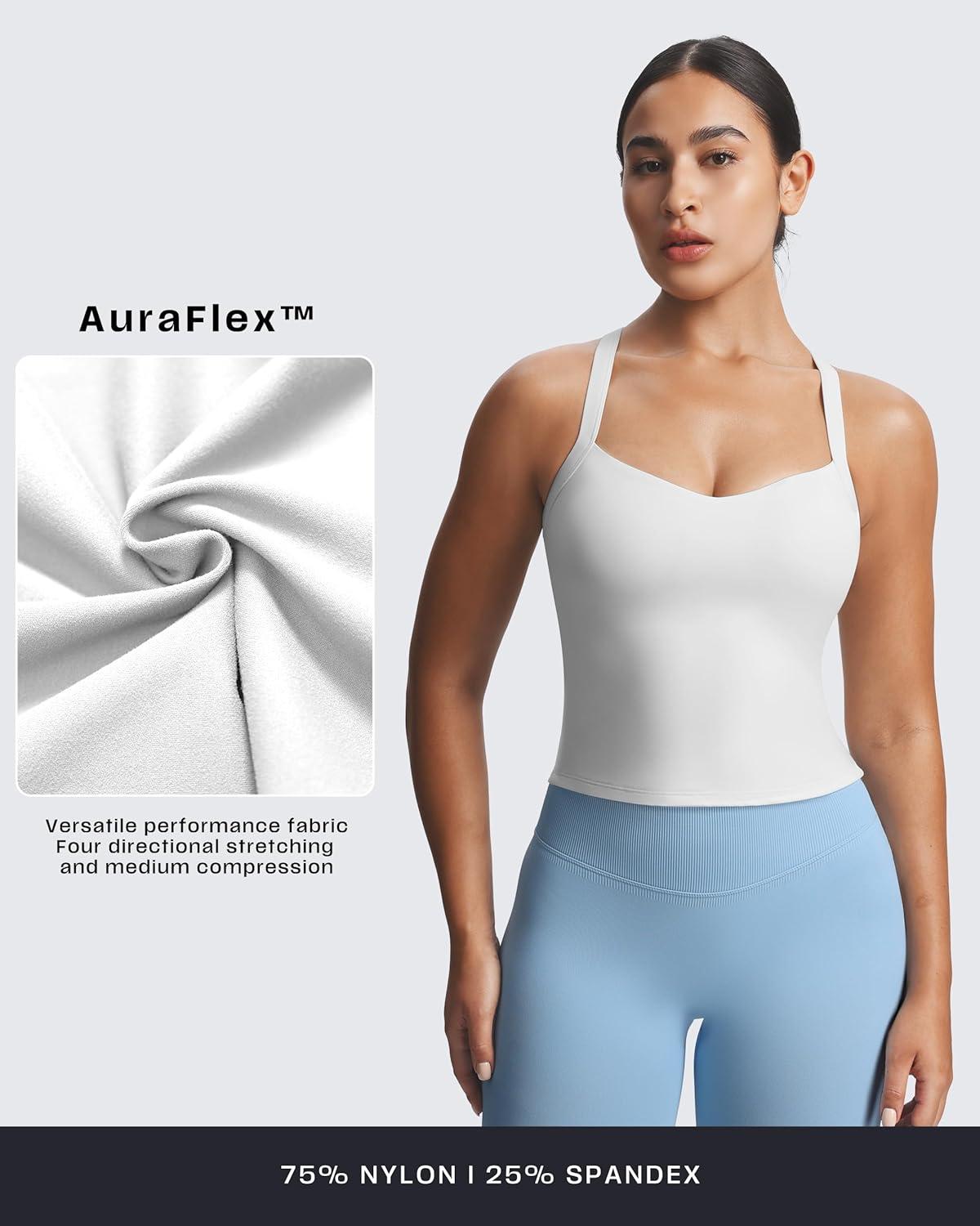 Aoxjox Women's Workout Sleeveless Lola Longline Tank Fitness Training Gym Yoga Crop Tanks(White)