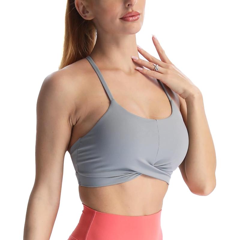 Aoxjox Womens Workout Sports Bras Becky Crossback Fitness Straps Padded Bra Yoga Crop Tank TopGrey