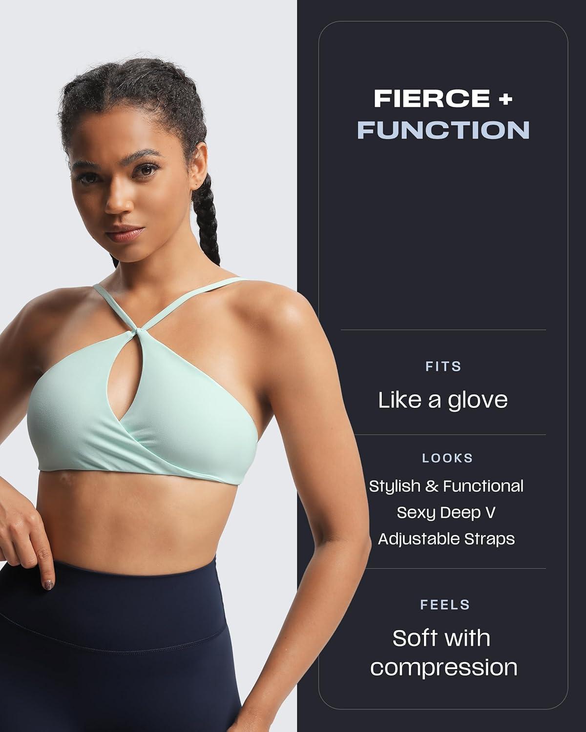Aoxjox Women's Workout Sports Bras Fitness Adjusted Ariel Halter Bra Yoga Crop Tank(Mint)