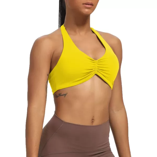 Aoxjox Womens Workout Sports Bras Fitness Backless Padded Taylor Scrunch Halter Bra Yoga Crop Tank TopVibrant Yellow