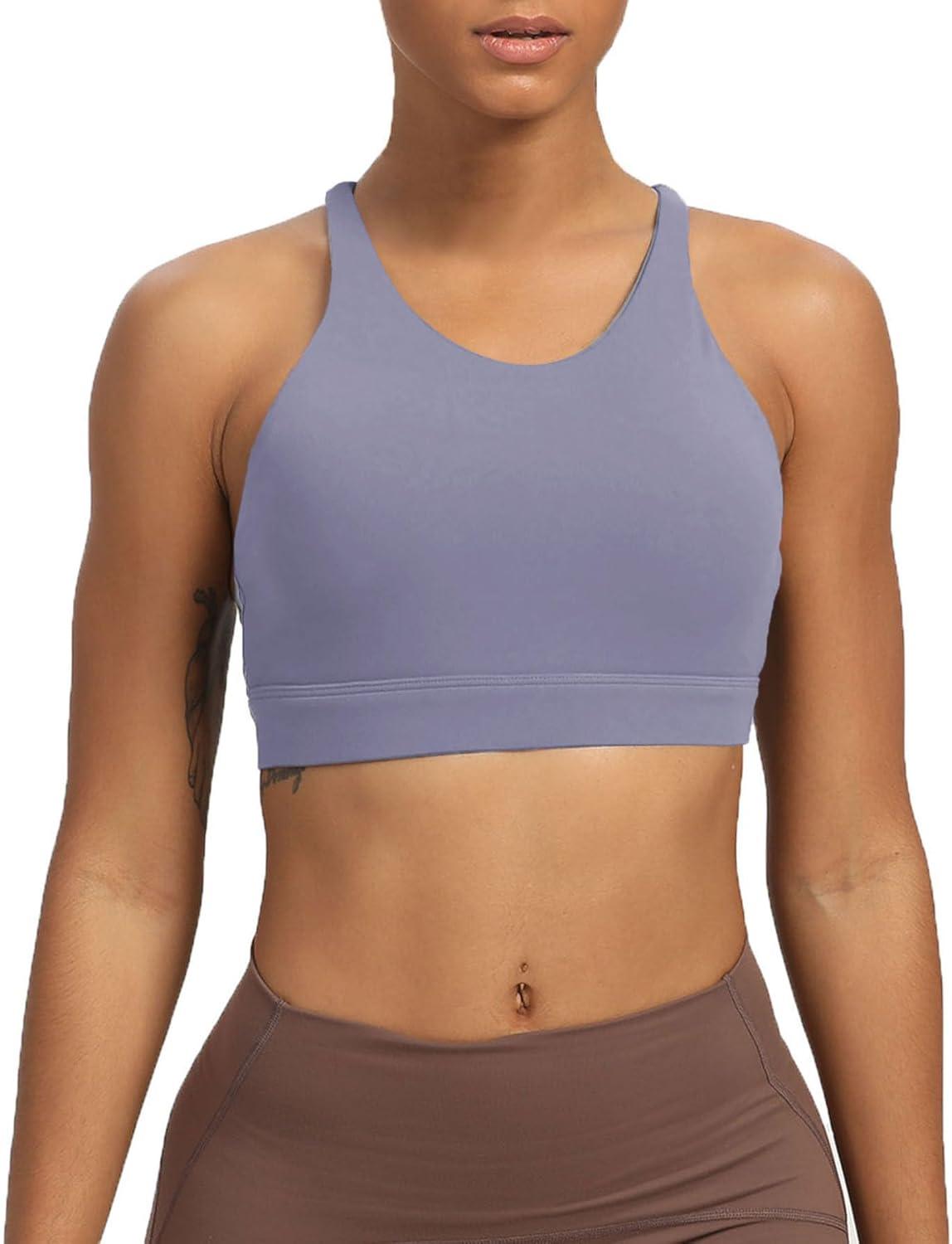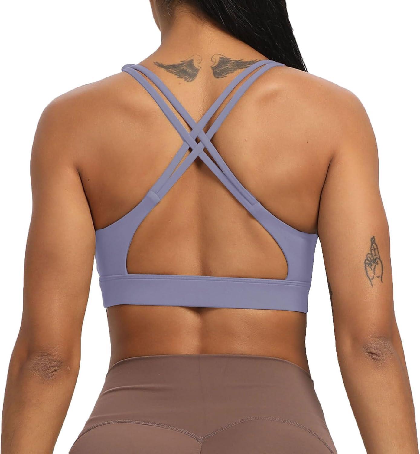 imageAoxjox Womens Workout Sports Bras Fitness MediumHigh Cross Back Sporty Bra Yoga Crop TankLazuli