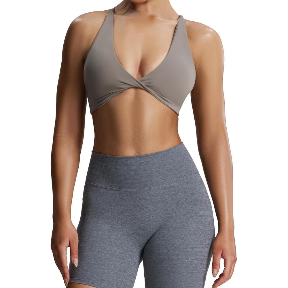Aoxjox Women's Workout Sports Bras Fitness Sienna Low Impact Bra Yoga Crop Tank(Driftwood)