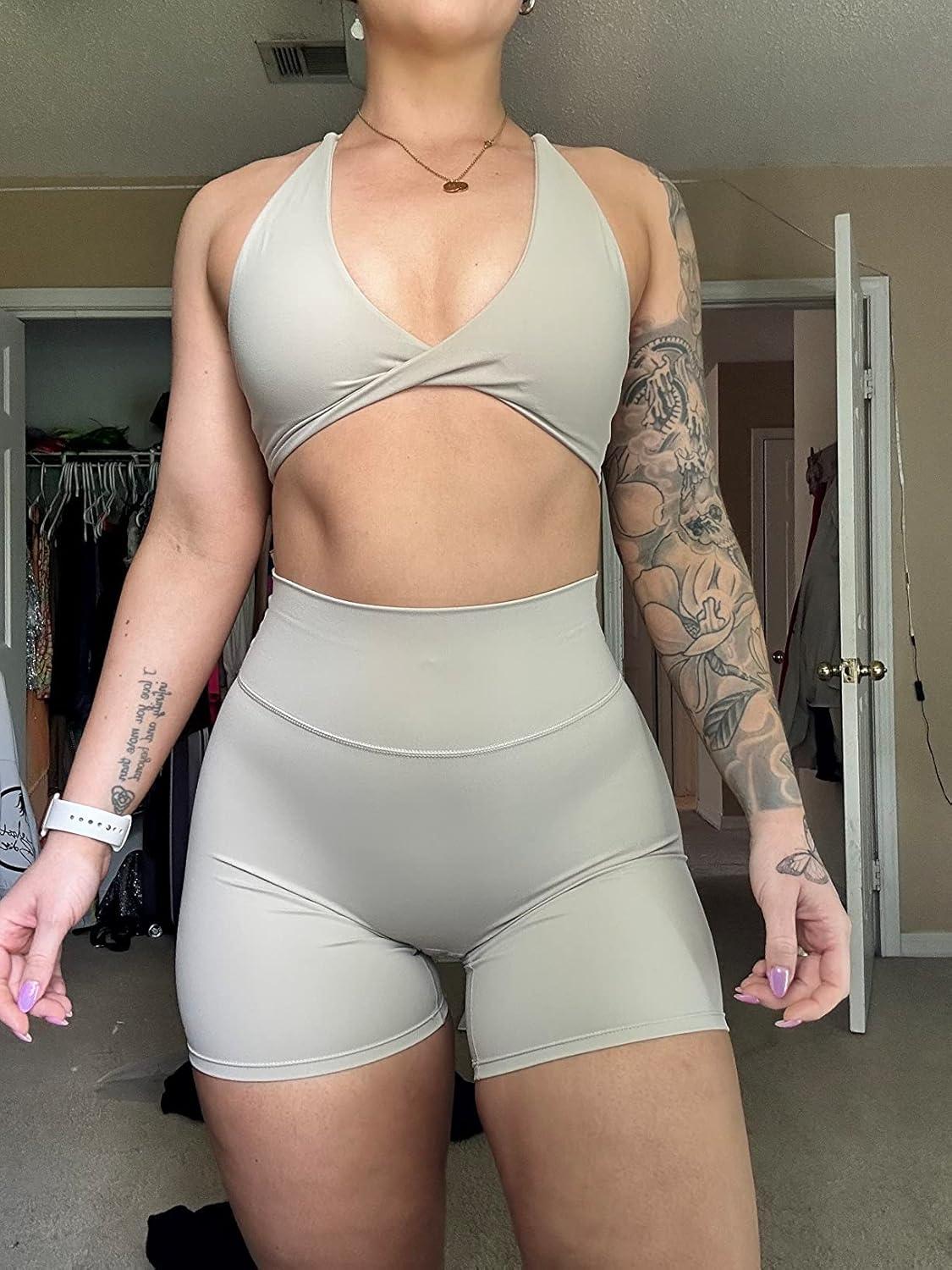 Aoxjox Women’s Workout Sports Bras Fitness Sienna Low Impact Bra Yoga Crop Tank(Mink)