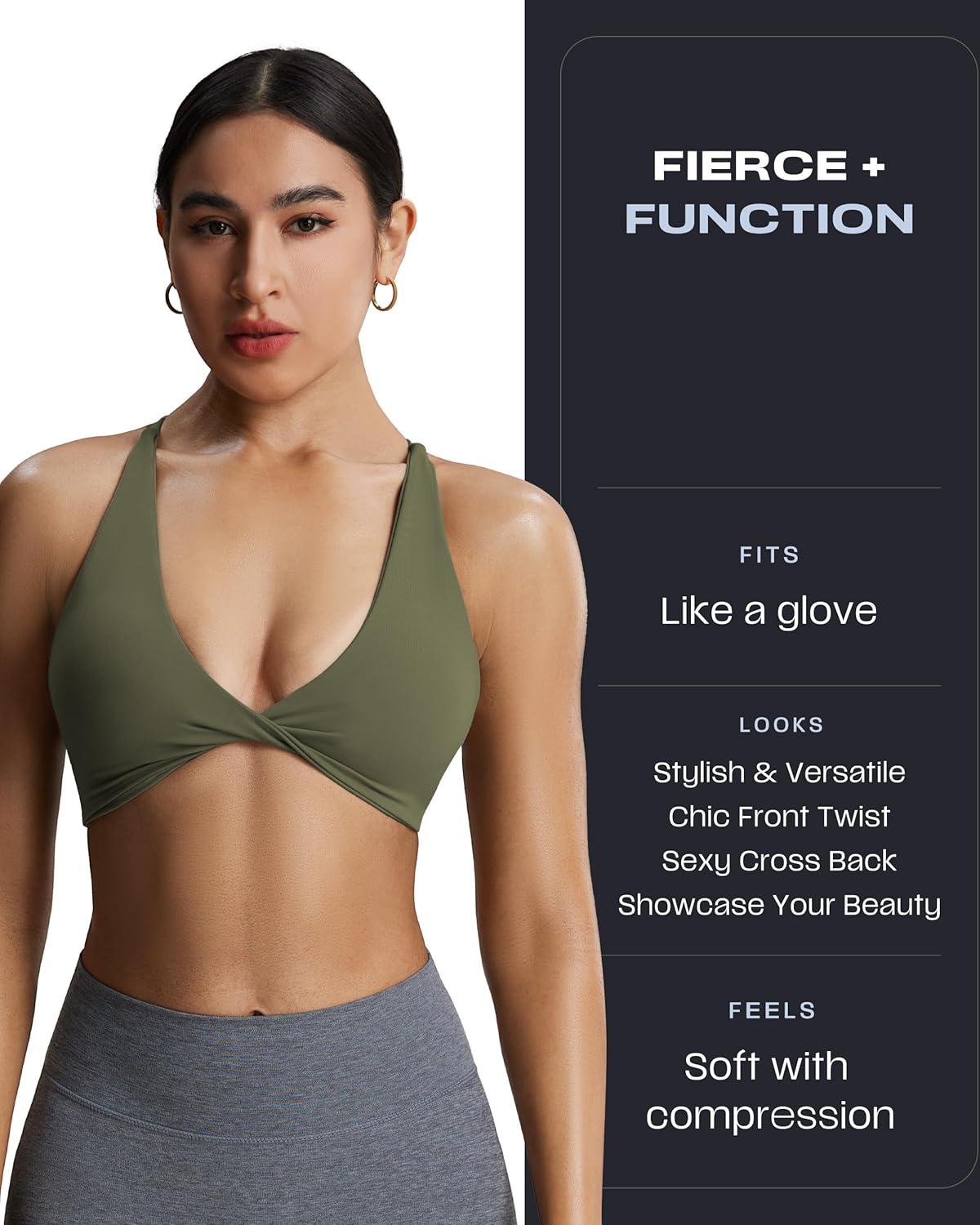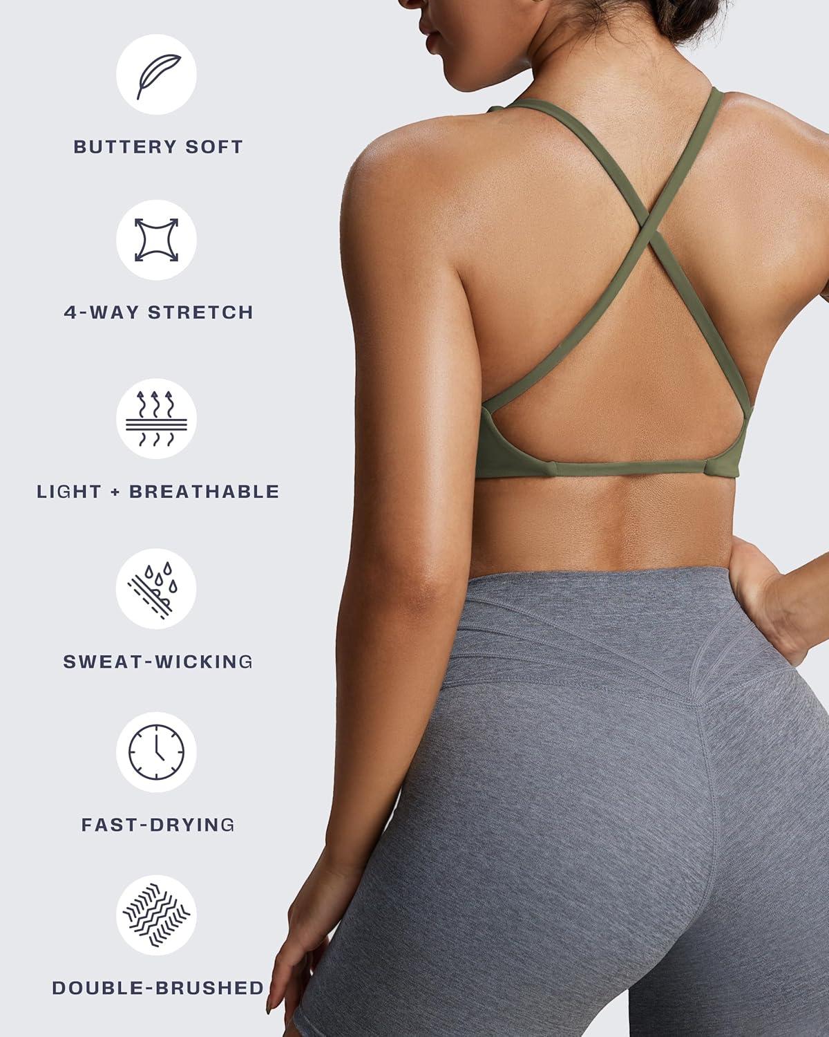 Aoxjox Women's Workout Sports Bras Fitness Sienna Low Impact Bra Yoga Crop Tank(Olive Green)