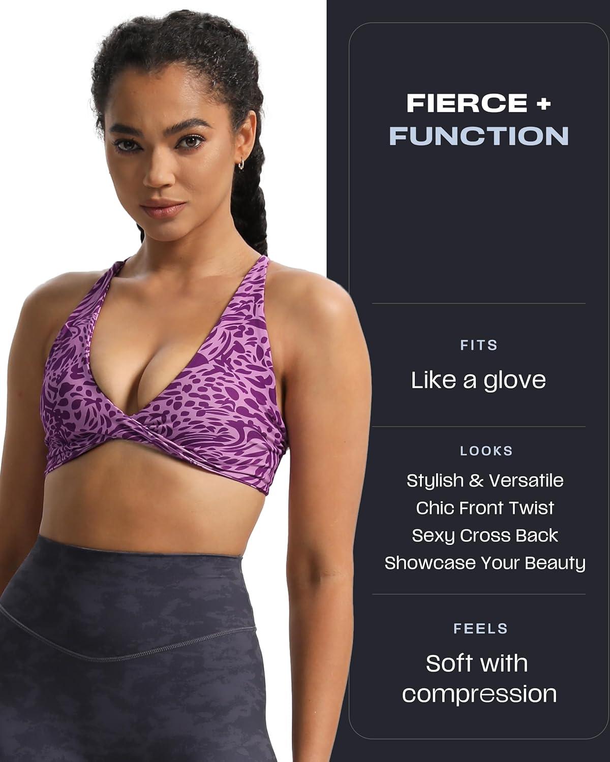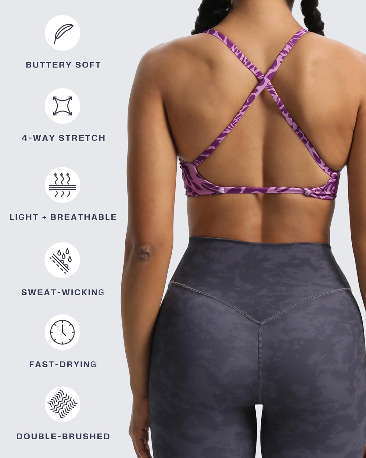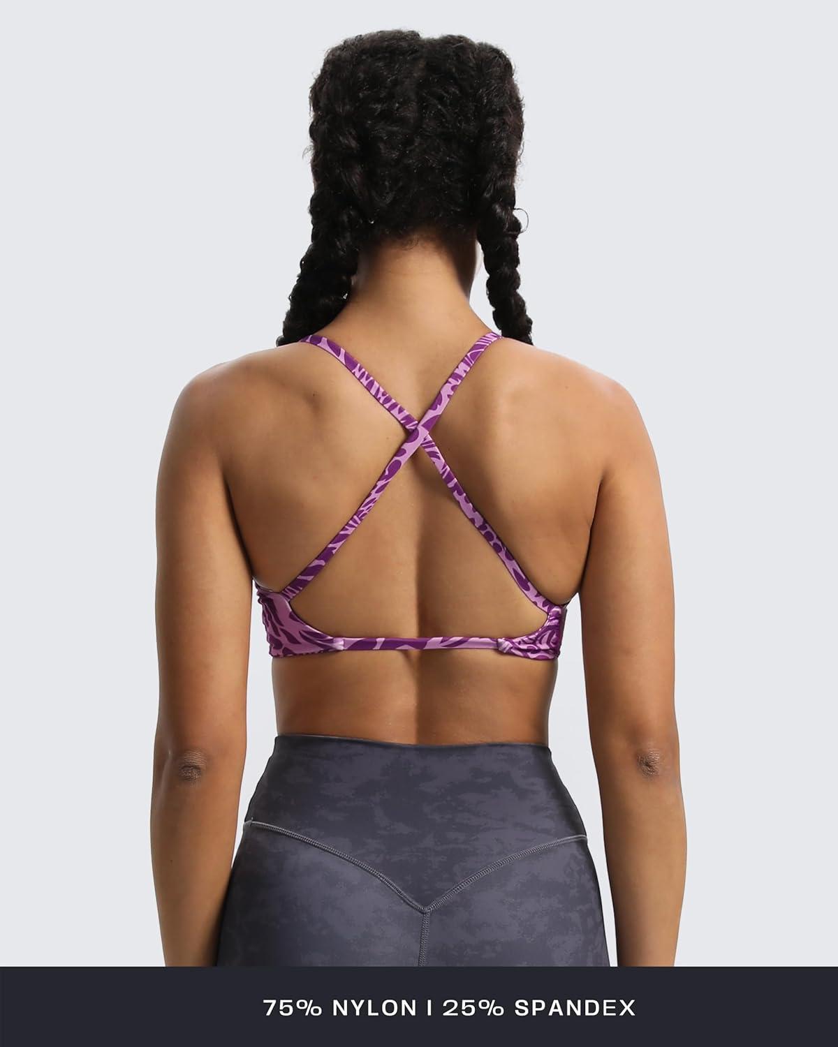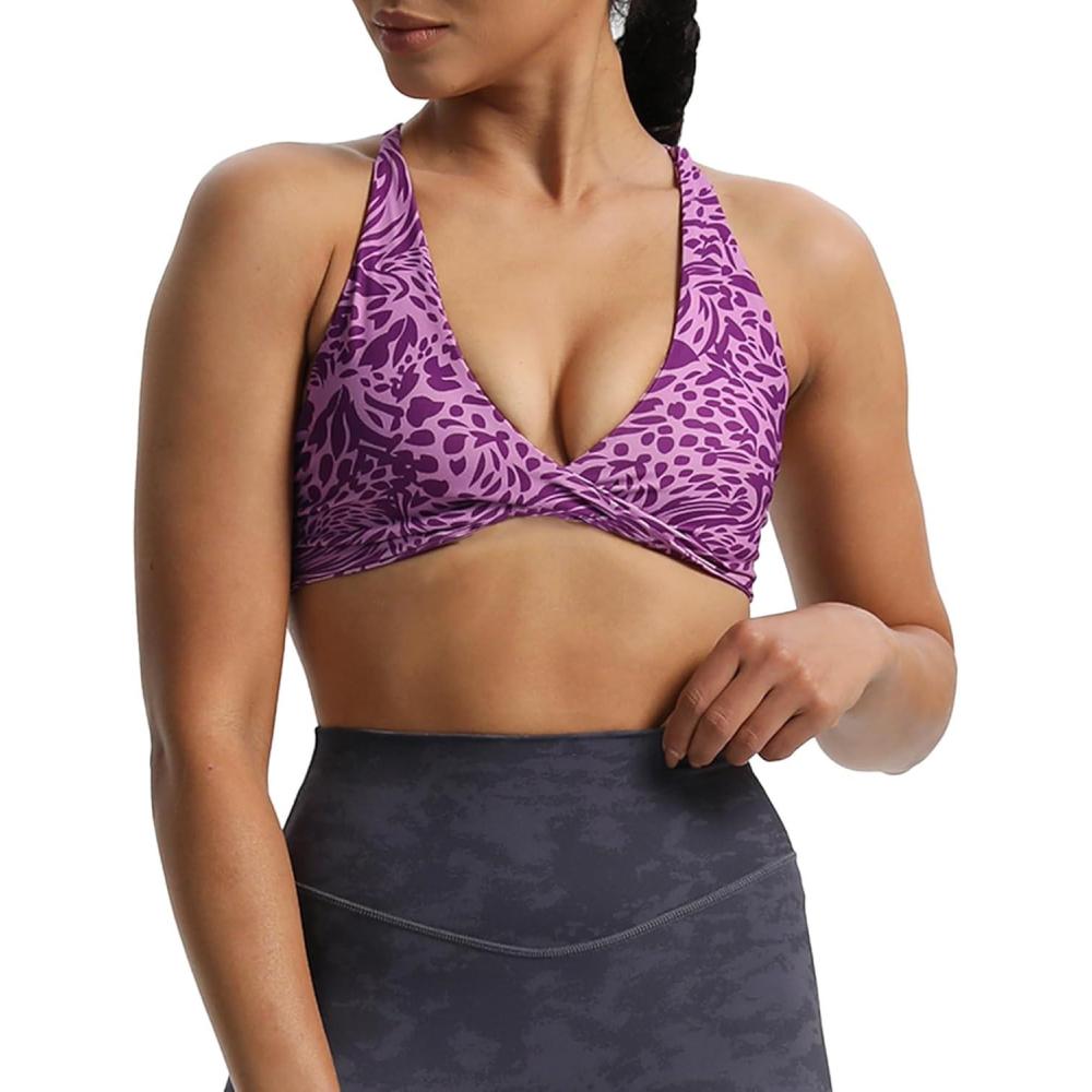 Aoxjox Women’s Workout Sports Bras Fitness Sienna Low Impact Bra Yoga Crop Tank(Purple Leaf Print)