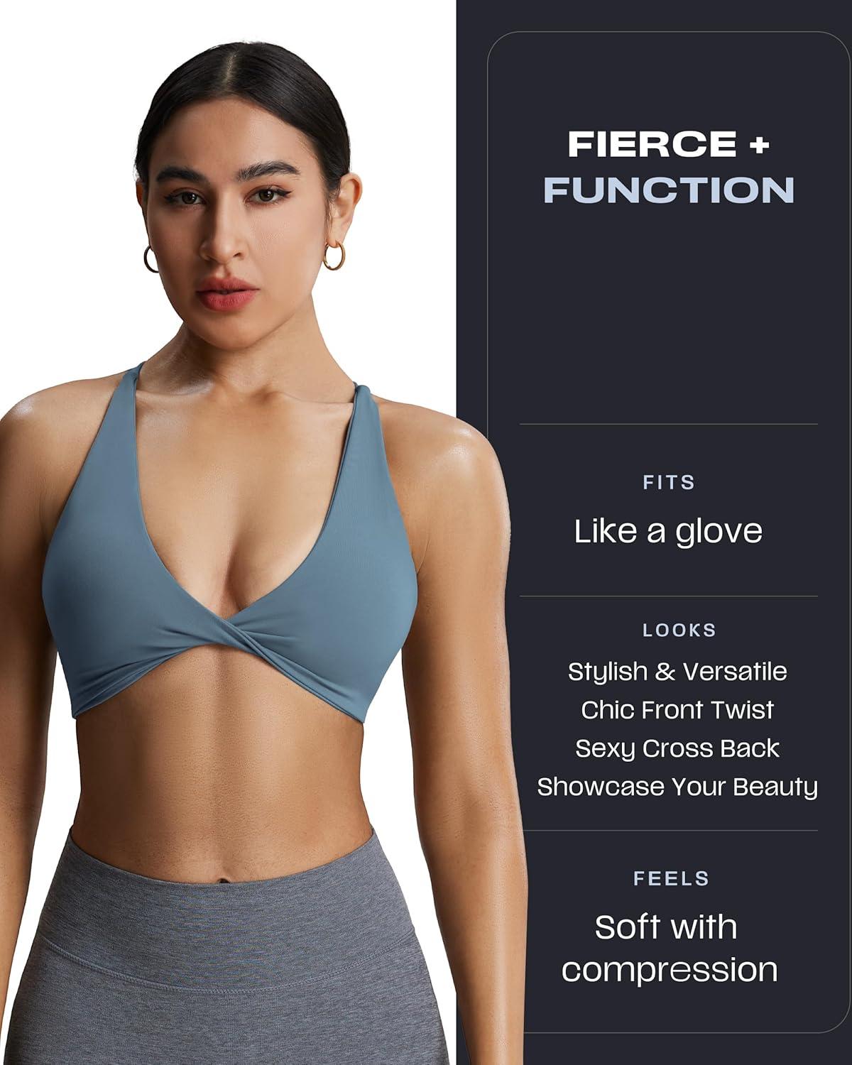 Aoxjox Women’s Workout Sports Bras Fitness Sienna Low Impact Bra Yoga Crop Tank(Steel Blue)