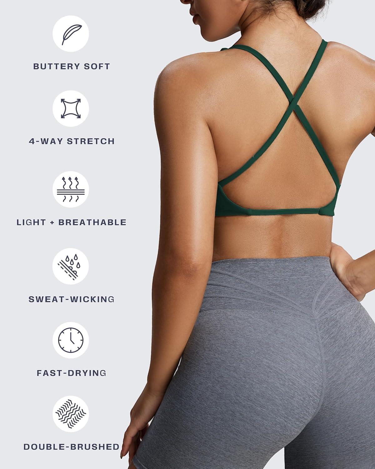 Aoxjox Women’s Workout Sports Bras Fitness Sienna Low Impact Bra Yoga Crop Tank(Storm Green)
