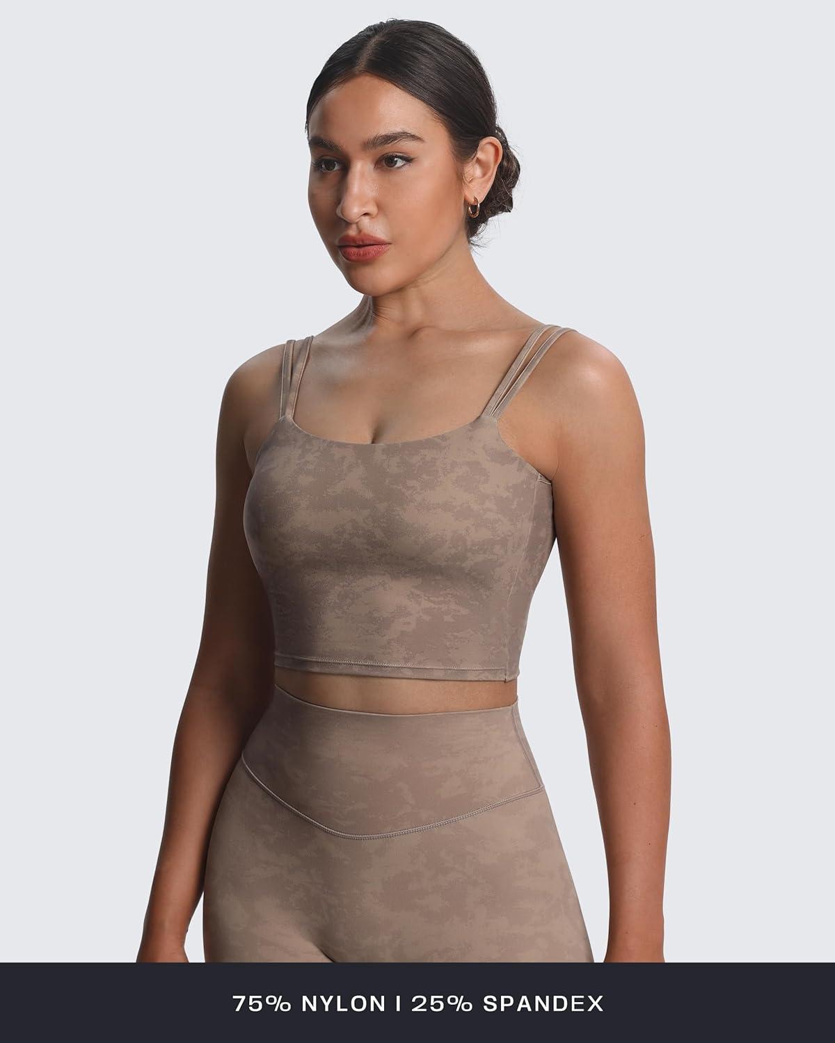 Aoxjox Women’s Workout Sports Bras Fitness Yoga Crop Tank Twist Back Cami(Cloud Fade Mocha)
