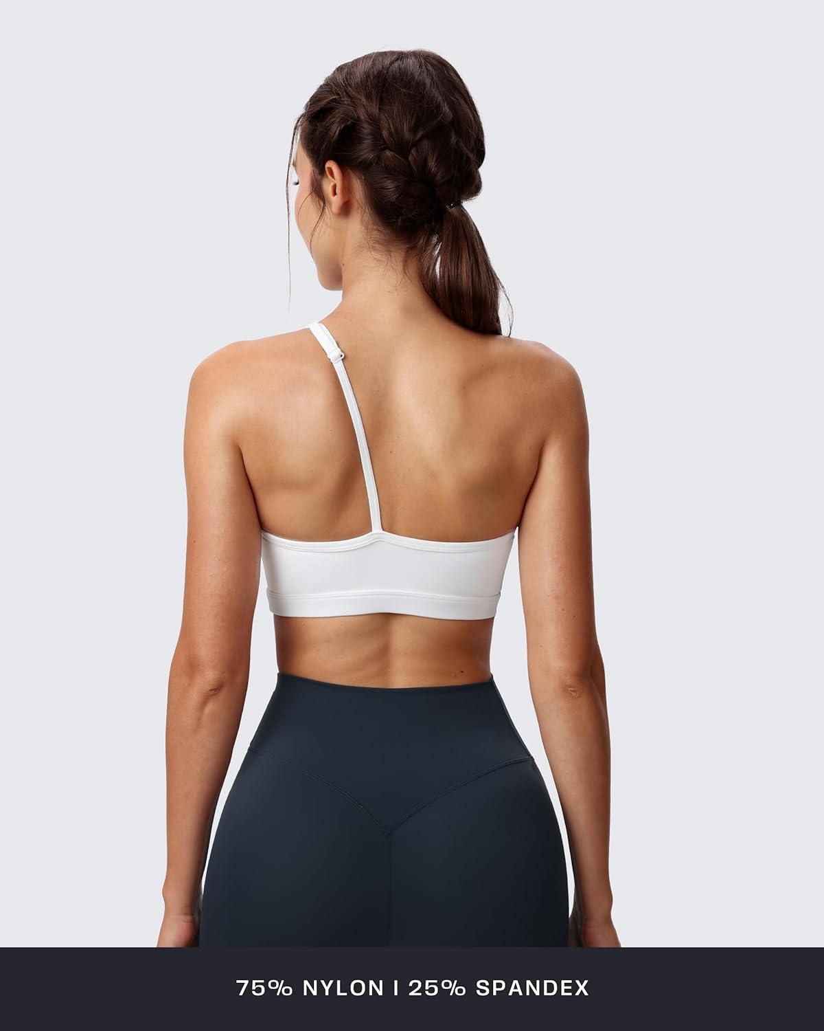 Aoxjox Women's Workout Sports Bras One Shoulder Caley Asymmetrical Bra Fitness Exercise Gym Yoga Crop Tank Top(White)