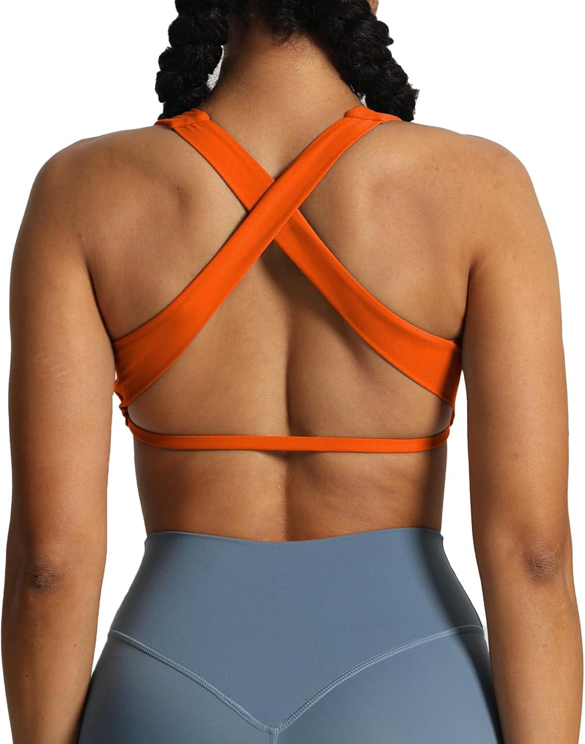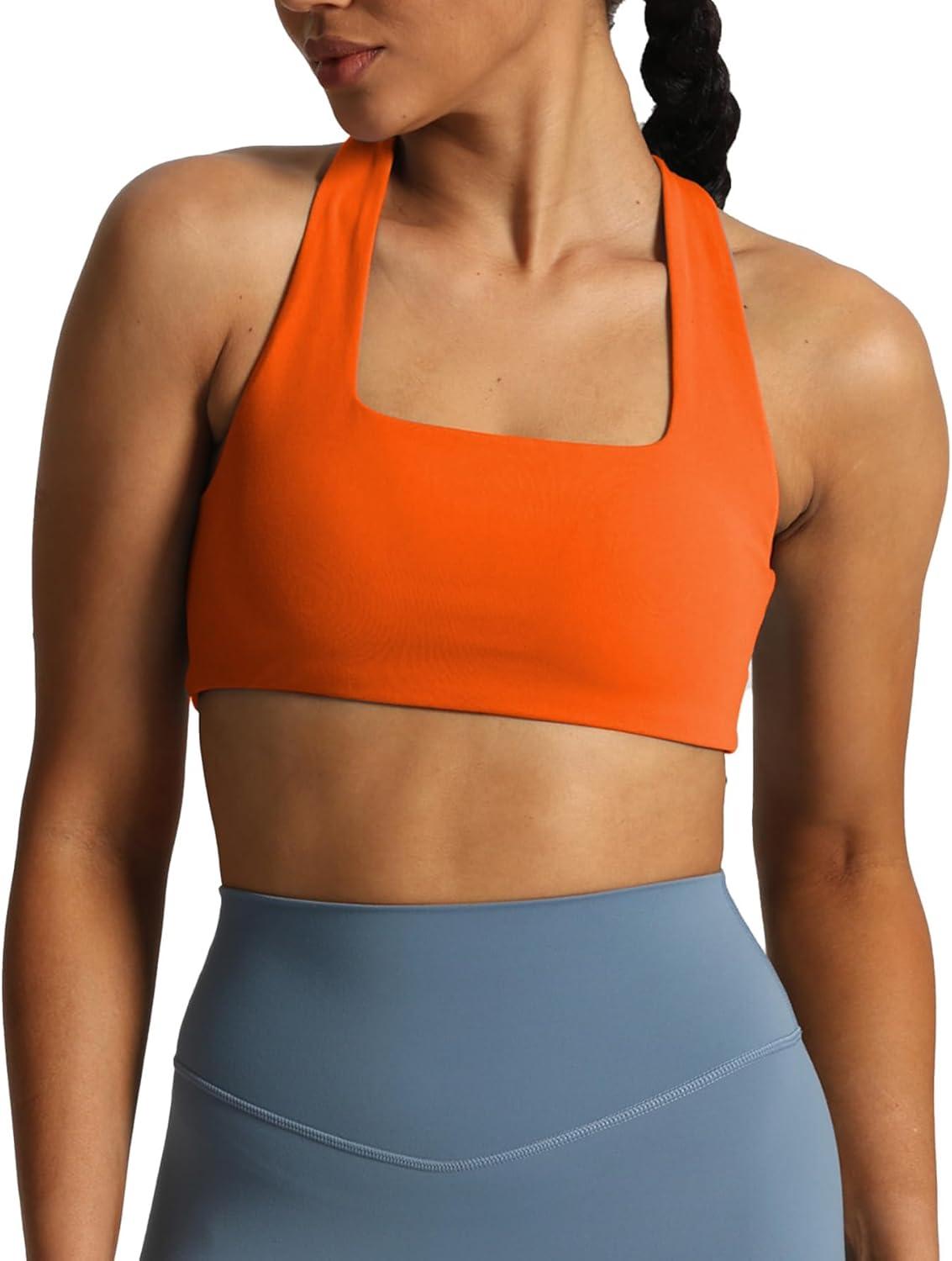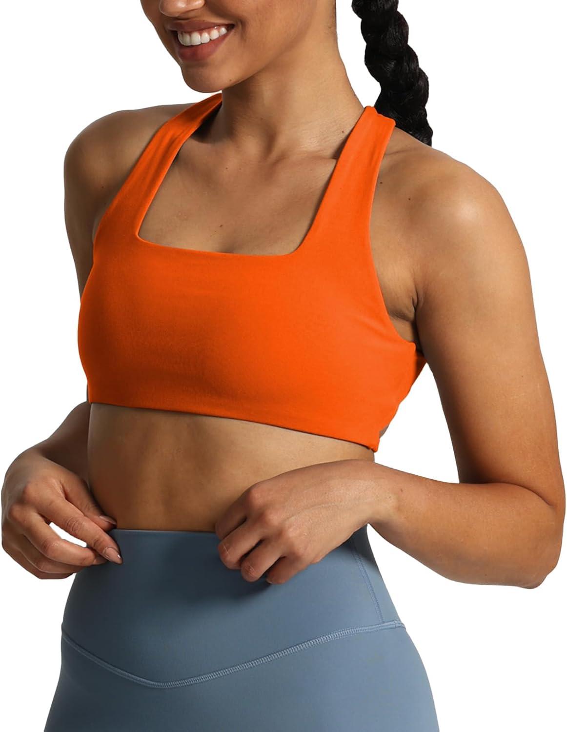 Aoxjox Women’s Workout Sports Bras Square Neck Emma Cross Back Fitness Training Gym Bra Yoga Crop Tank(Firecracker)
