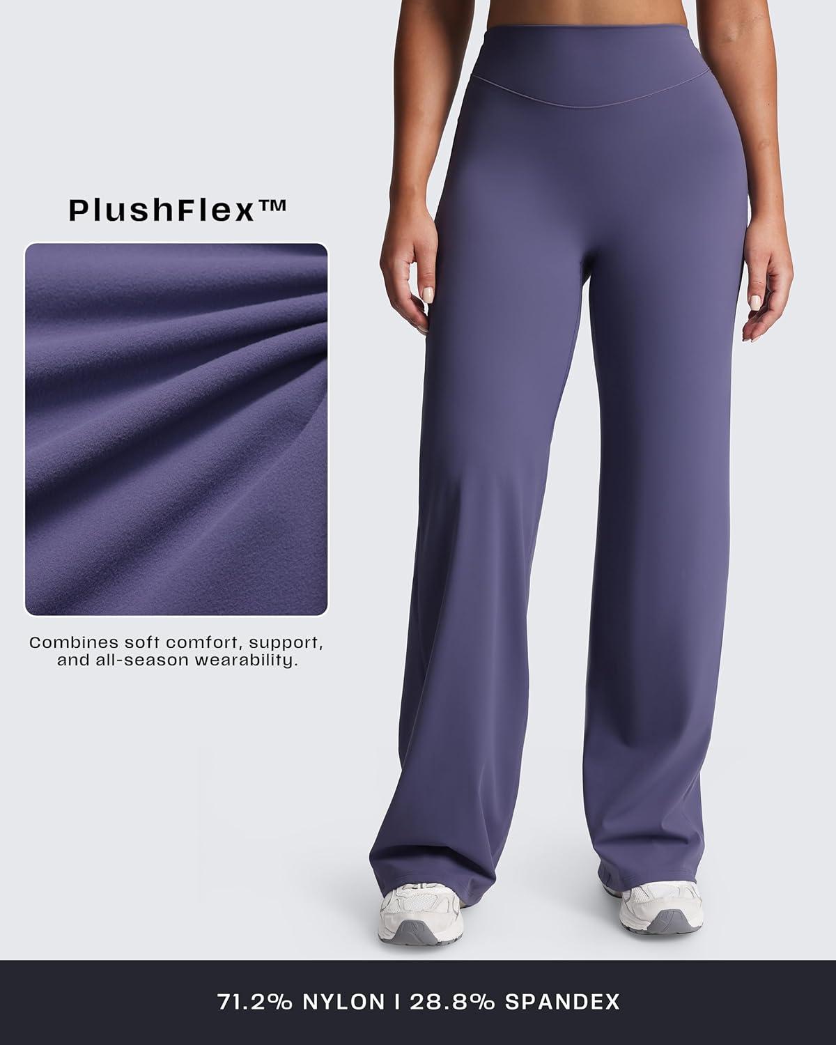 Aoxjox Women’s Workout Velura Straight Leg Leggings Bottoms Mid-Waist Hidden Srcunch PlushFlex™ Gym Yoga Pants 31″/33″/35″(Smoky Violet)