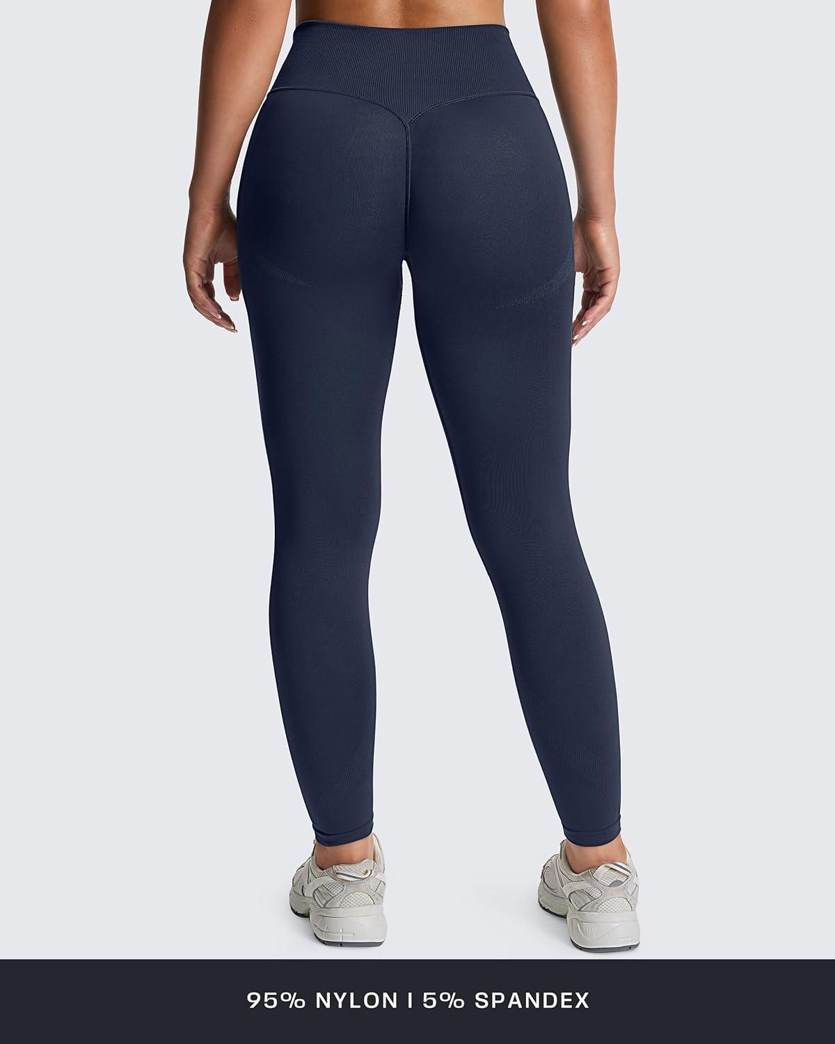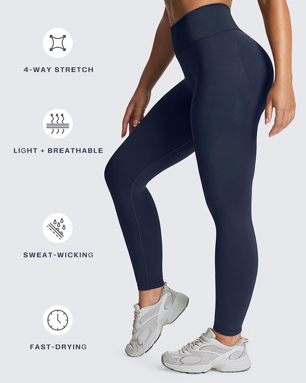 Aoxjox Workout Kinetic Seamles Leggings for Women High Waisted Hidden Scrunch Tummy Control Gym Yoga Pants 23"(Naval Blue)