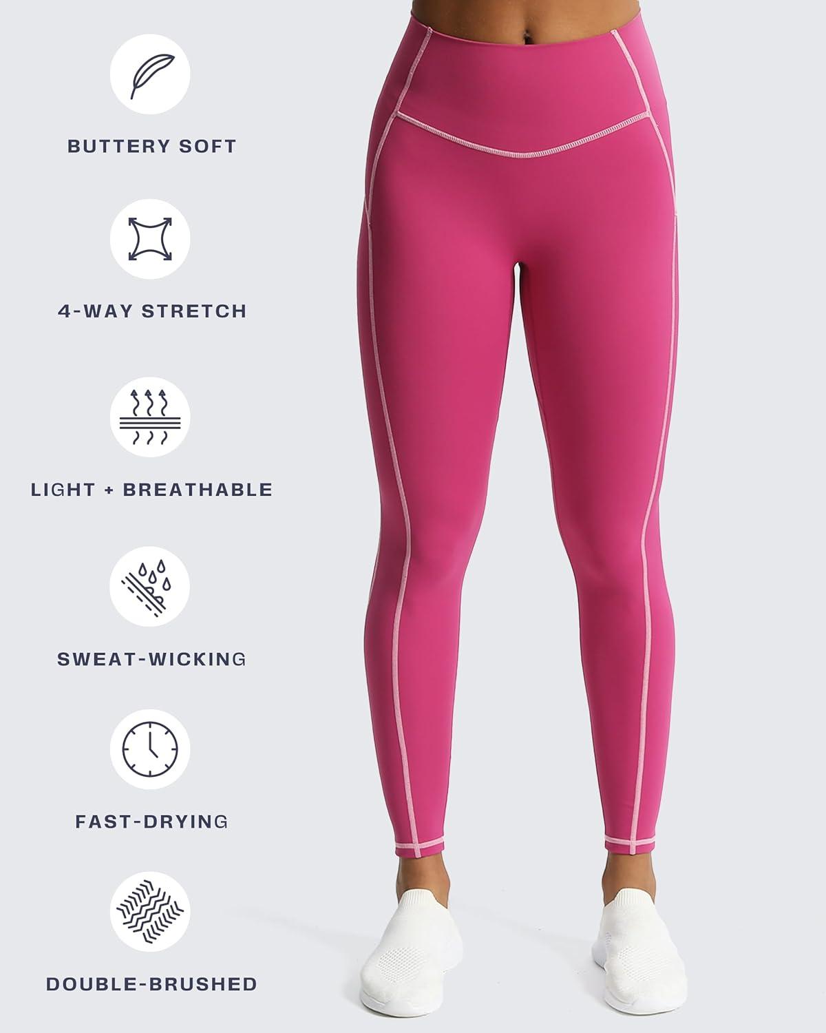 Aoxjox Workout Leggings for Women High Waisted Lexi Lined Exercise Athletic Gym Fitness Yoga Pants 26″(Baton Red/ Mauve)