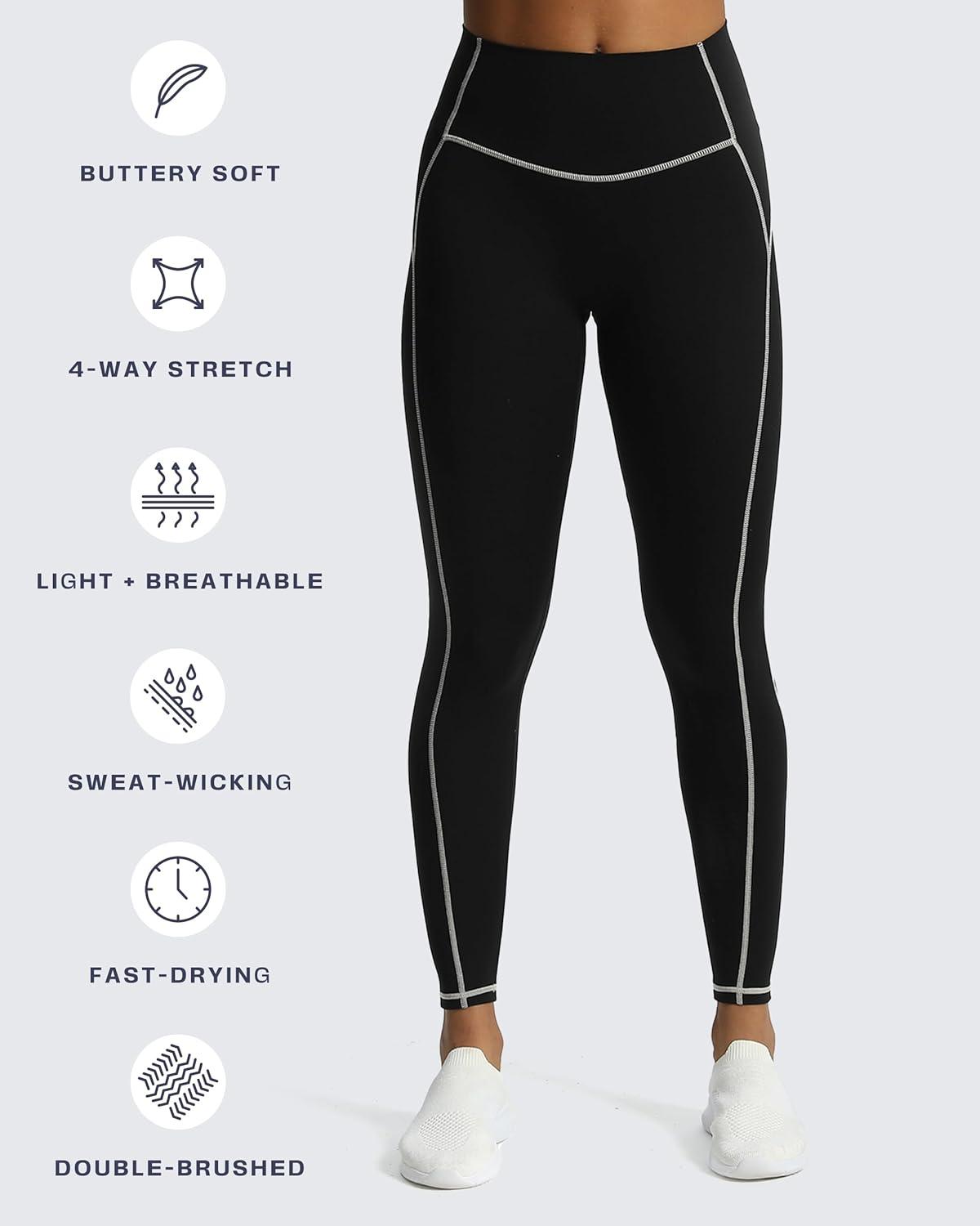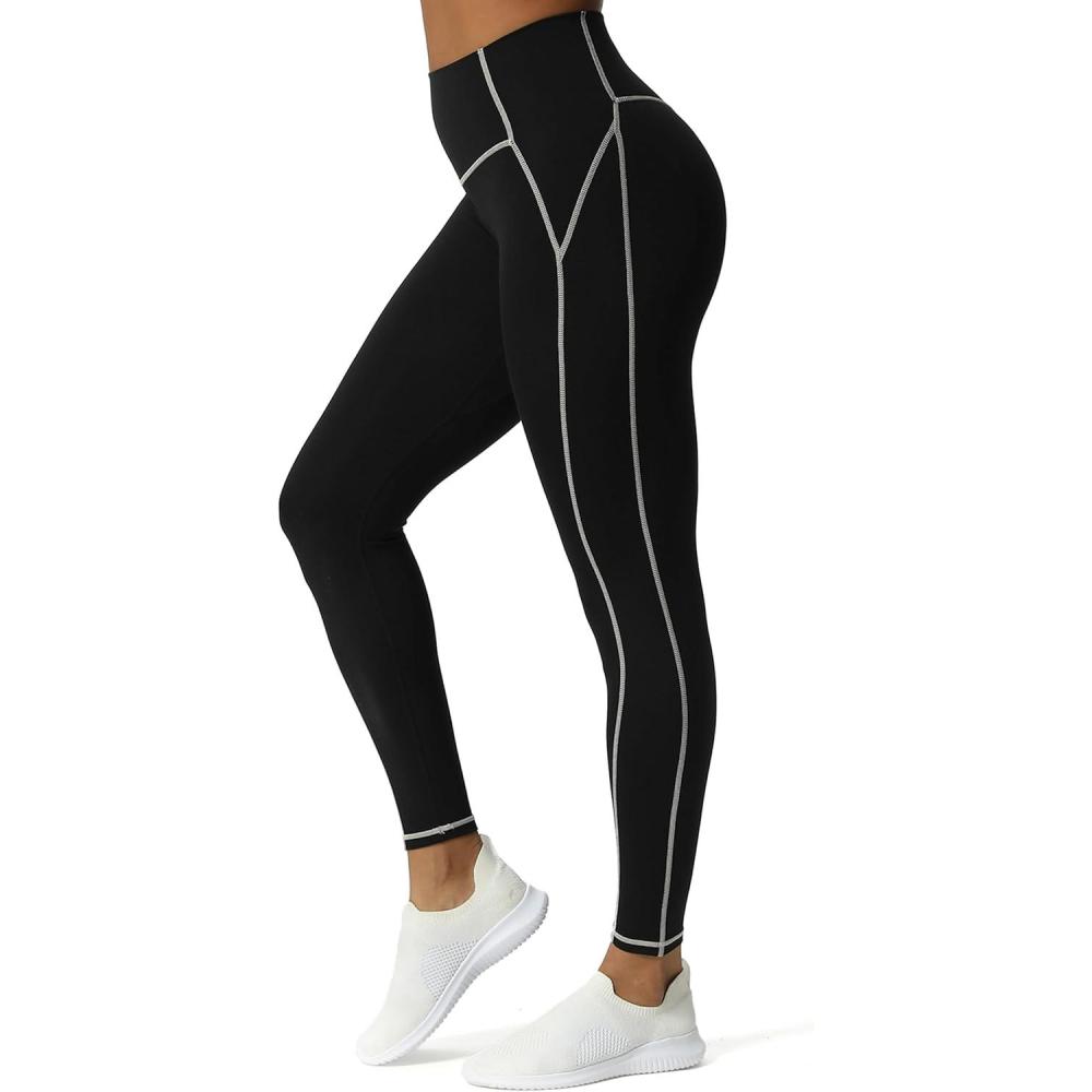 Aoxjox Workout Leggings for Women High Waisted Lexi Lined Exercise Athletic Gym Fitness Yoga Pants 26″(Blackness and White)