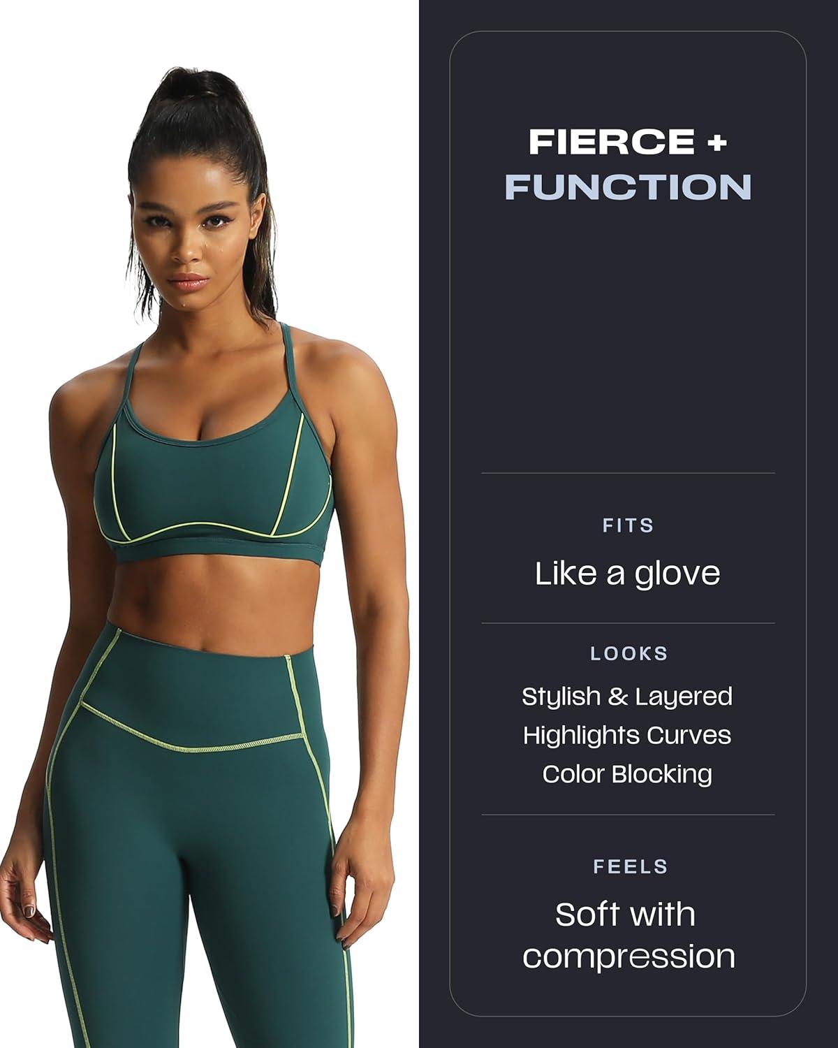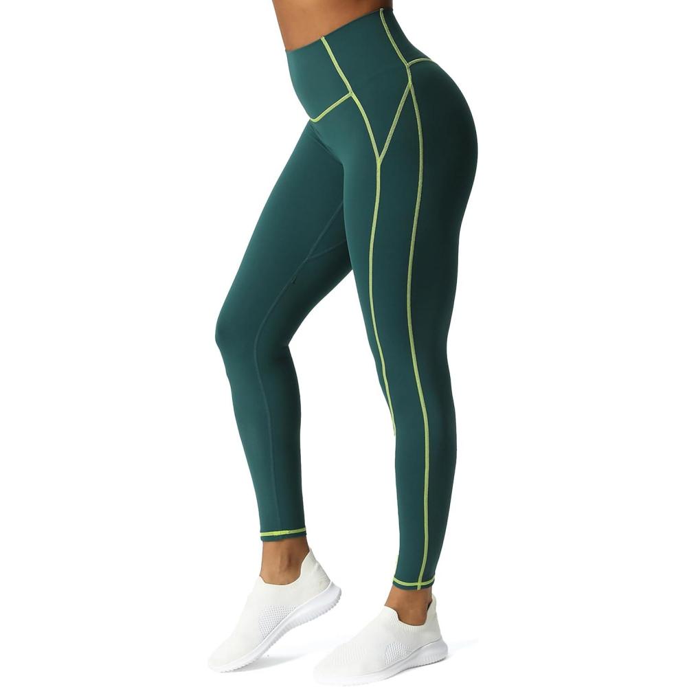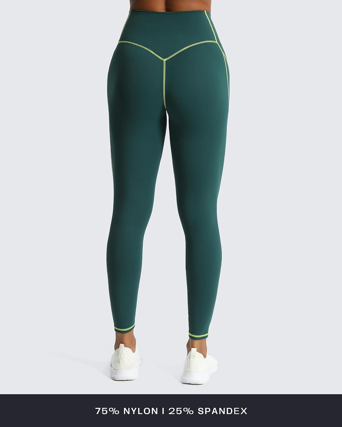 Aoxjox Workout Leggings for Women High Waisted Lexi Lined Exercise Athletic Gym Fitness Yoga Pants 26″(Dark Sea Green/ Lime Green)