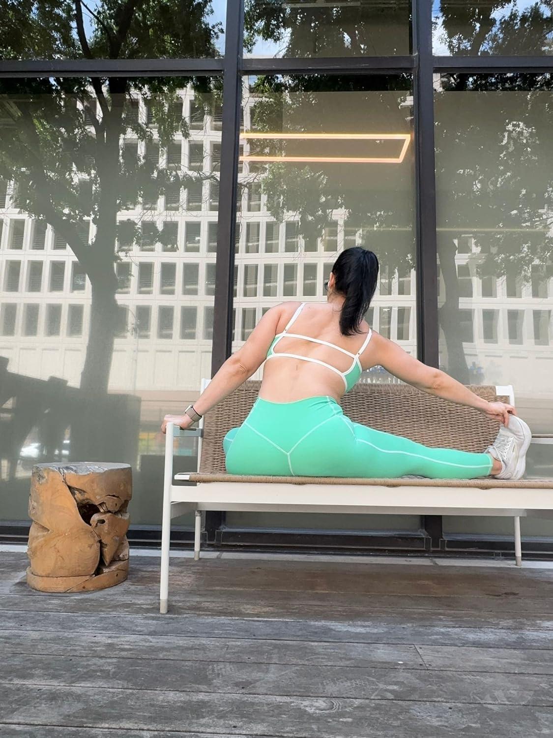 imageAoxjox Workout Leggings for Women High Waisted Lexi Lined Exercise Athletic Gym Fitness Yoga Pants 26quotKatydid GreenWhite