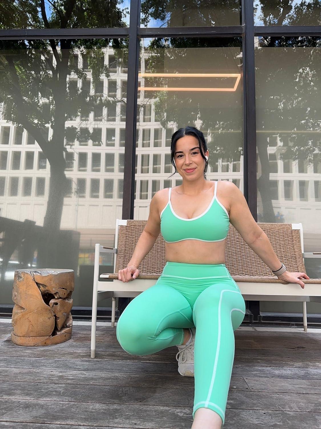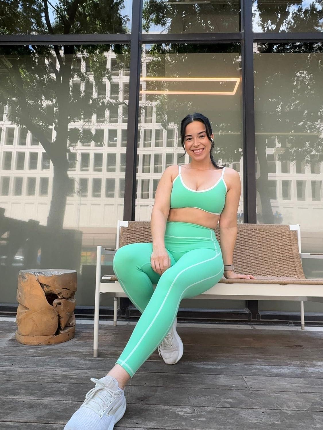 Aoxjox Workout Leggings for Women High Waisted Lexi Lined Exercise Athletic Gym Fitness Yoga Pants 26″(Katydid Green/White)