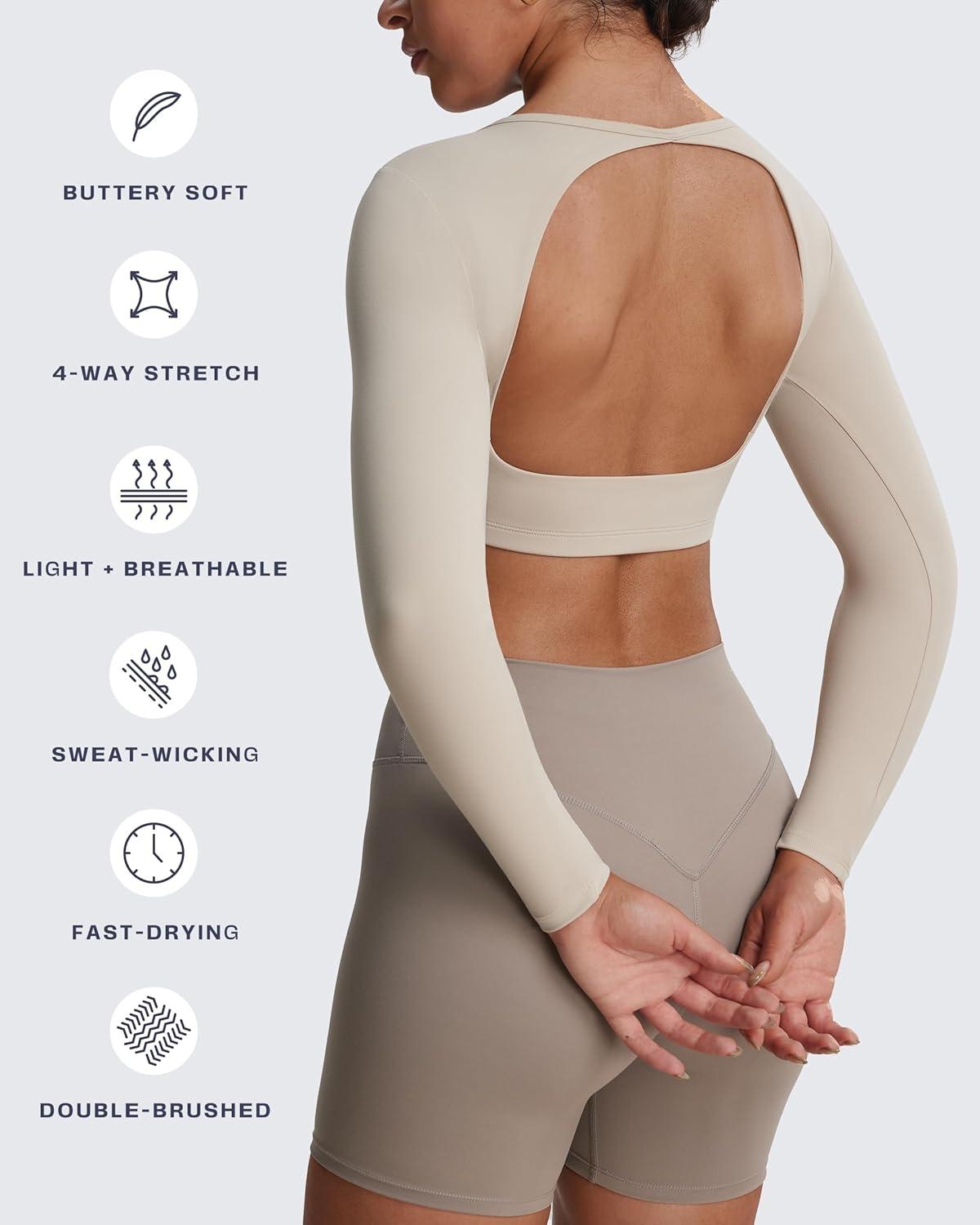Aoxjox Workout Long Sleeve Crop Tops for Women Clarissa Backless Gym Cropped T Shirt Top(Mink)