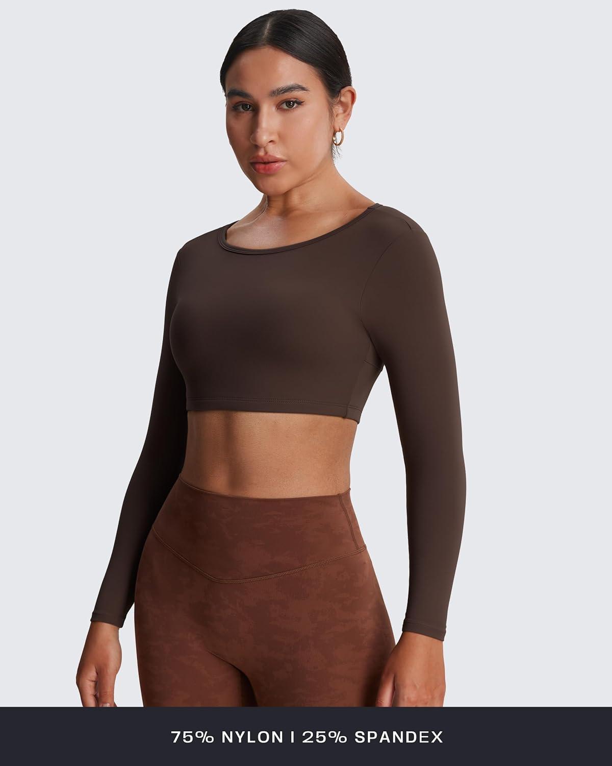 Aoxjox Workout Long Sleeve Crop Tops for Women Clarissa Backless Gym Cropped T Shirt Top(Mulch)
