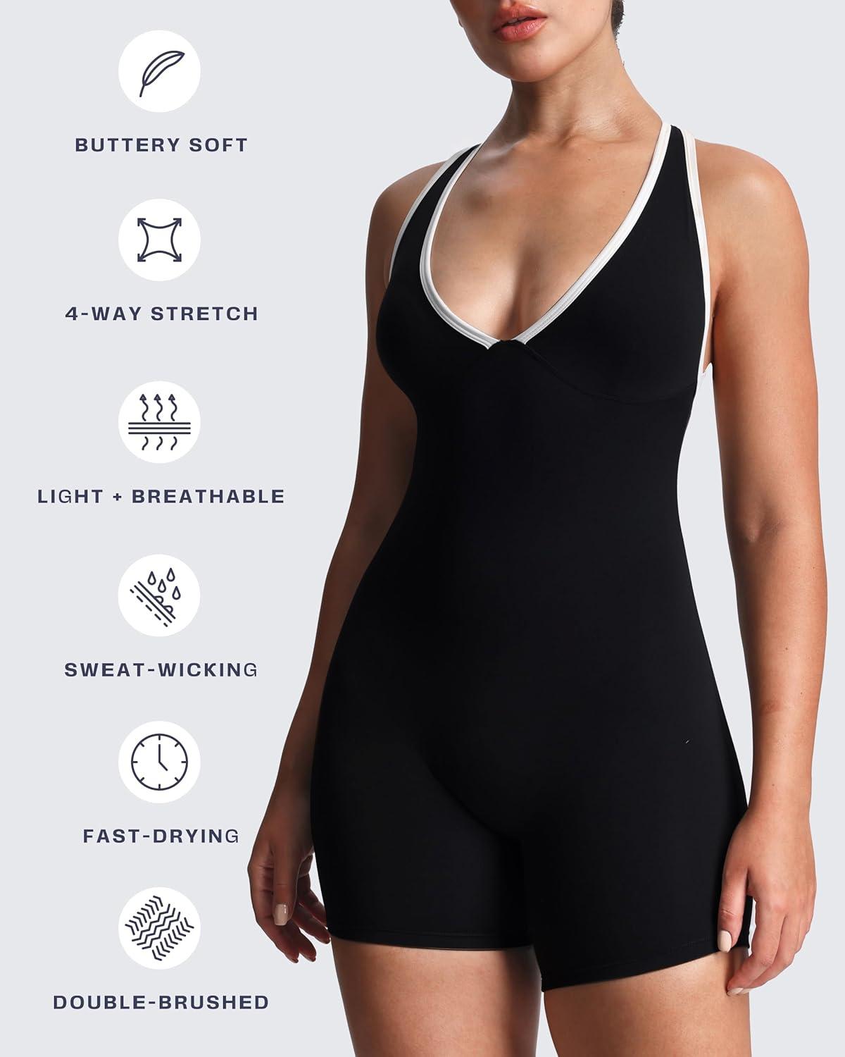 Aoxjox Workout Rompers for Women Halter Cross Back One Piece Gym Yoga Sports Bras Lexi Lined Bodysuit Shorts(Black and White)