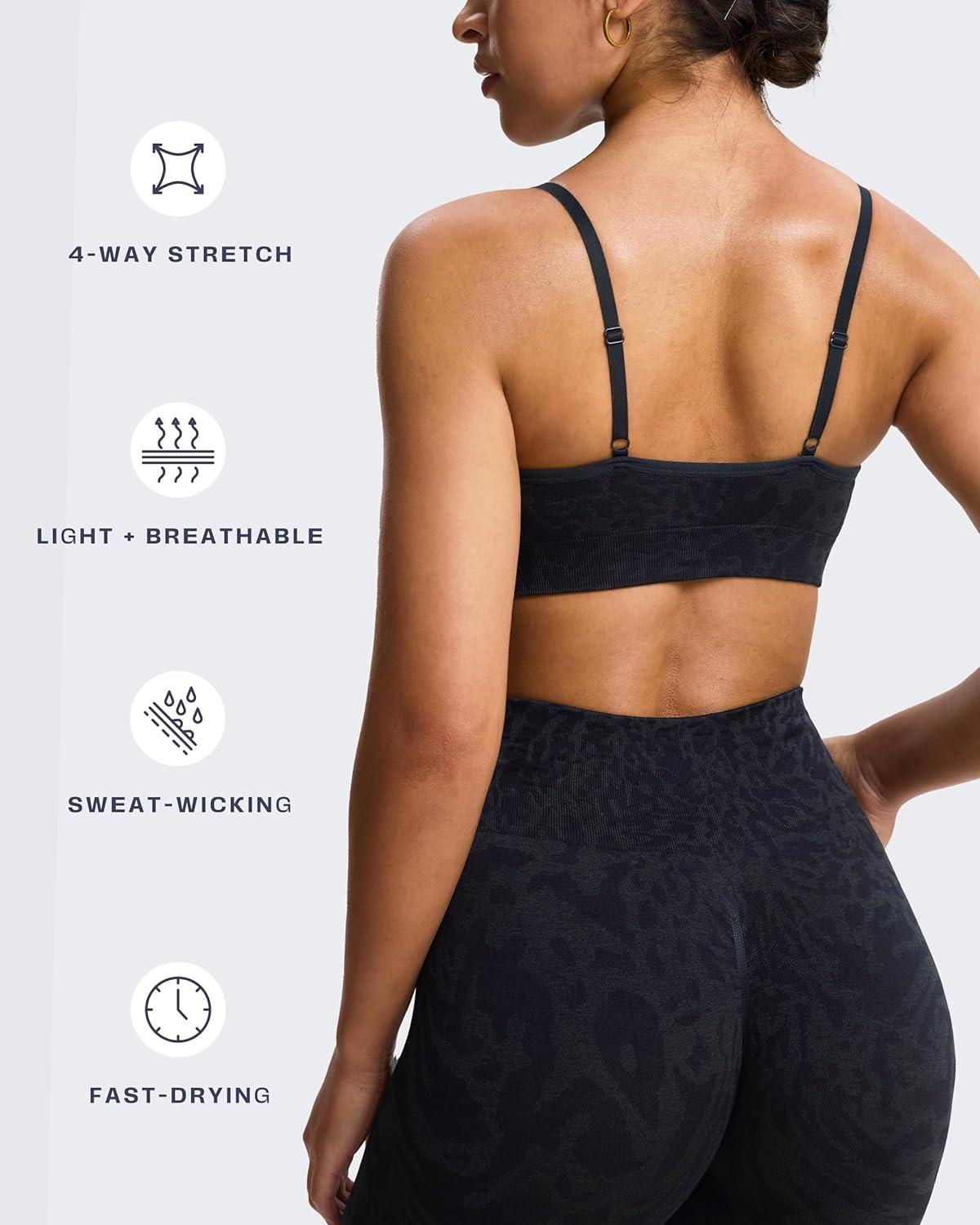 Aoxjox Workout Seamless Camo Sports Bra for Women Adjustable Fitness Exercise Gym Bras Yoga Crop Tank(Black Camo)