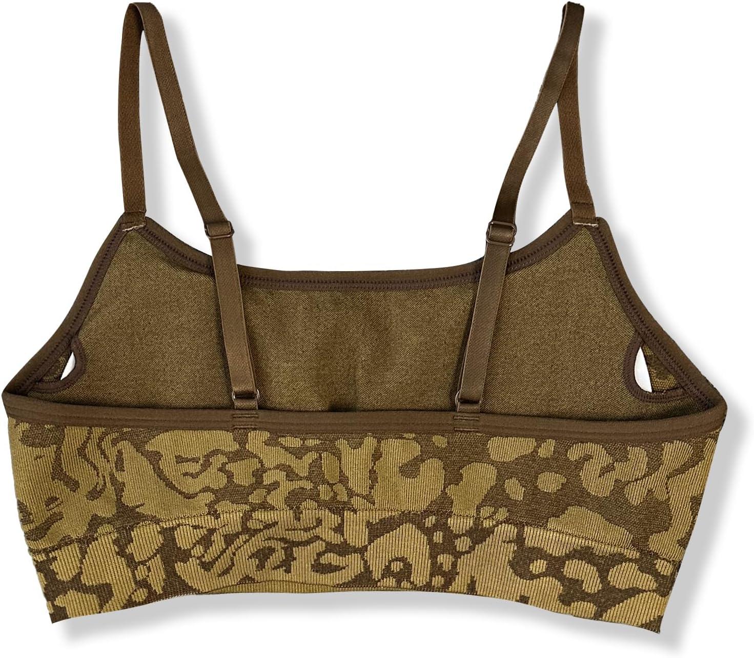 Aoxjox Workout Seamless Camo Sports Bra for Women Adjustable Fitness Exercise Gym Bras Yoga Crop Tank(Brown Camo)
