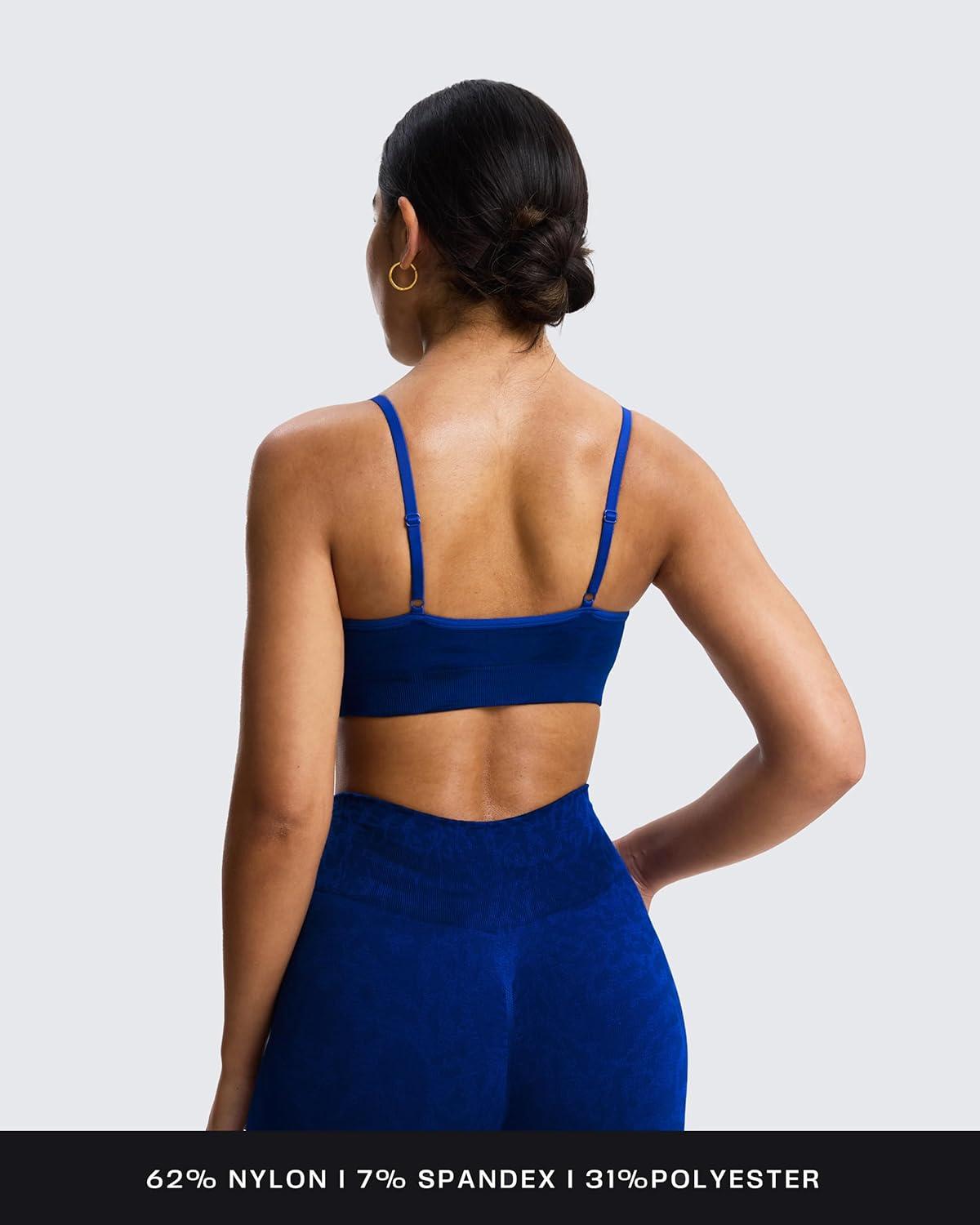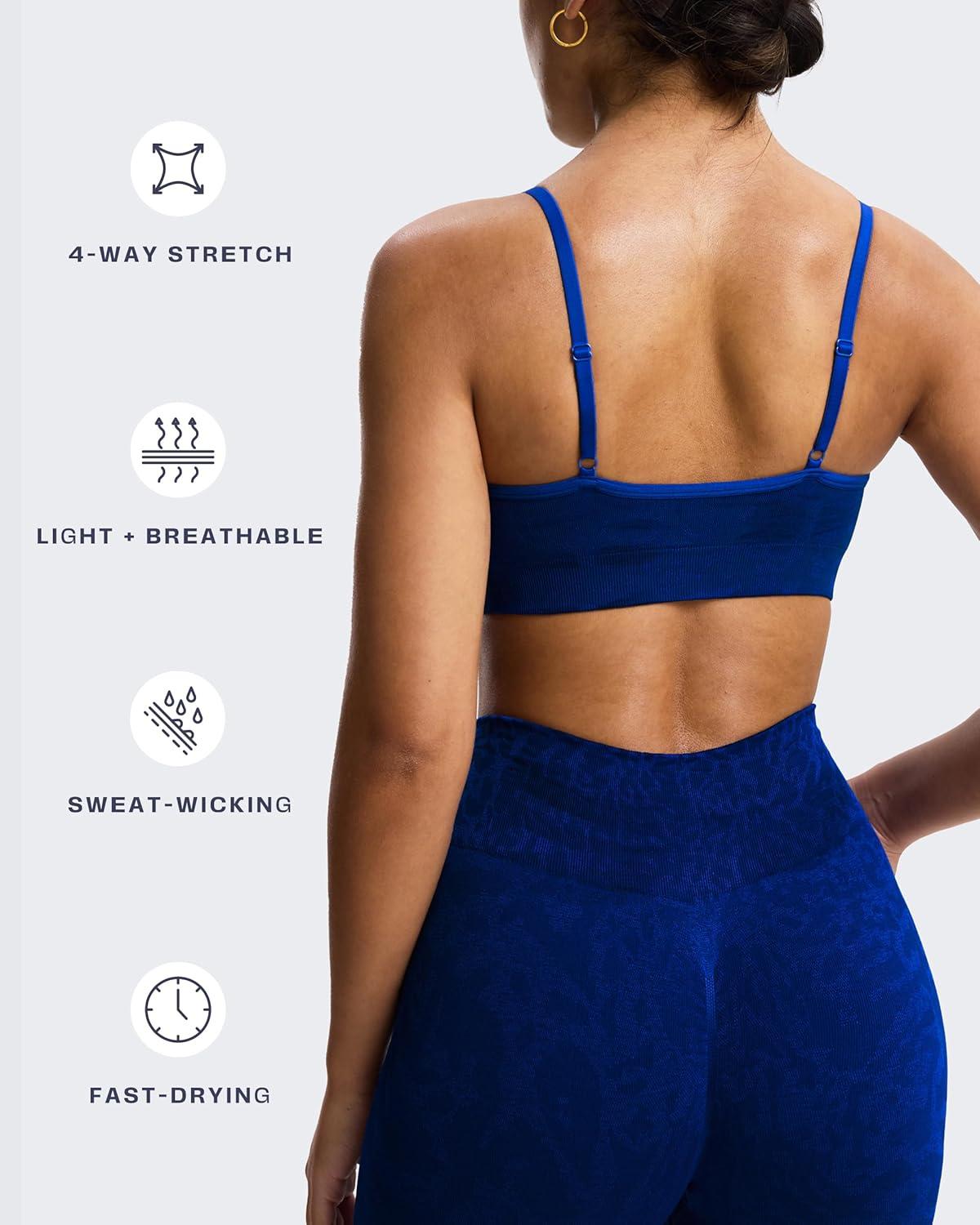 Aoxjox Workout Seamless Camo Sports Bra for Women Adjustable Fitness Exercise Gym Bras Yoga Crop Tank(Navy Camo)