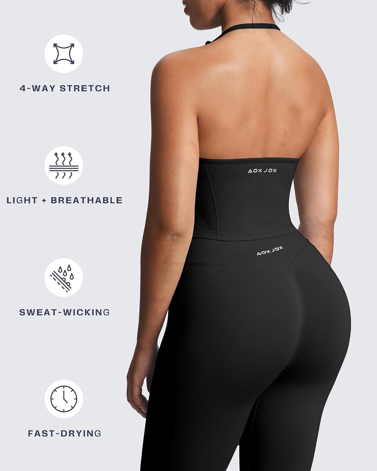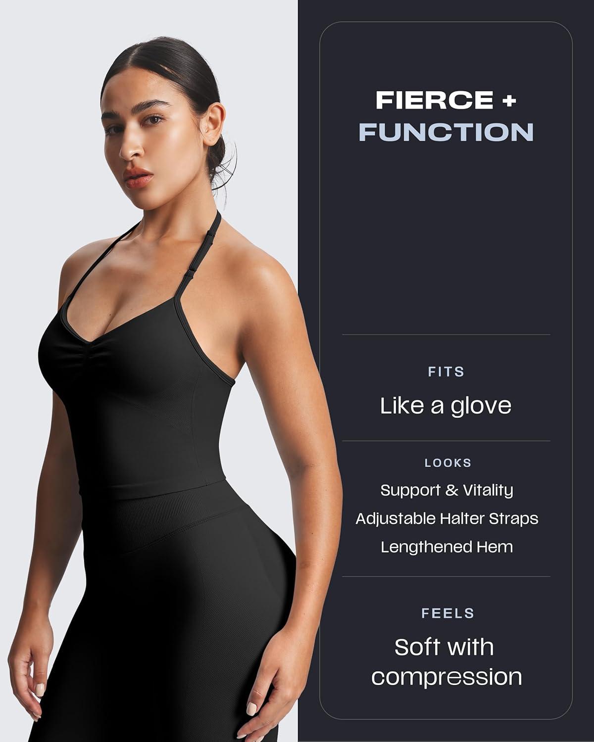 Aoxjox Workout Seamless Sleeveless for Women Adjustable Halter Impact Longline Strappy Top Gym Yoga Crop Tanks(Black)